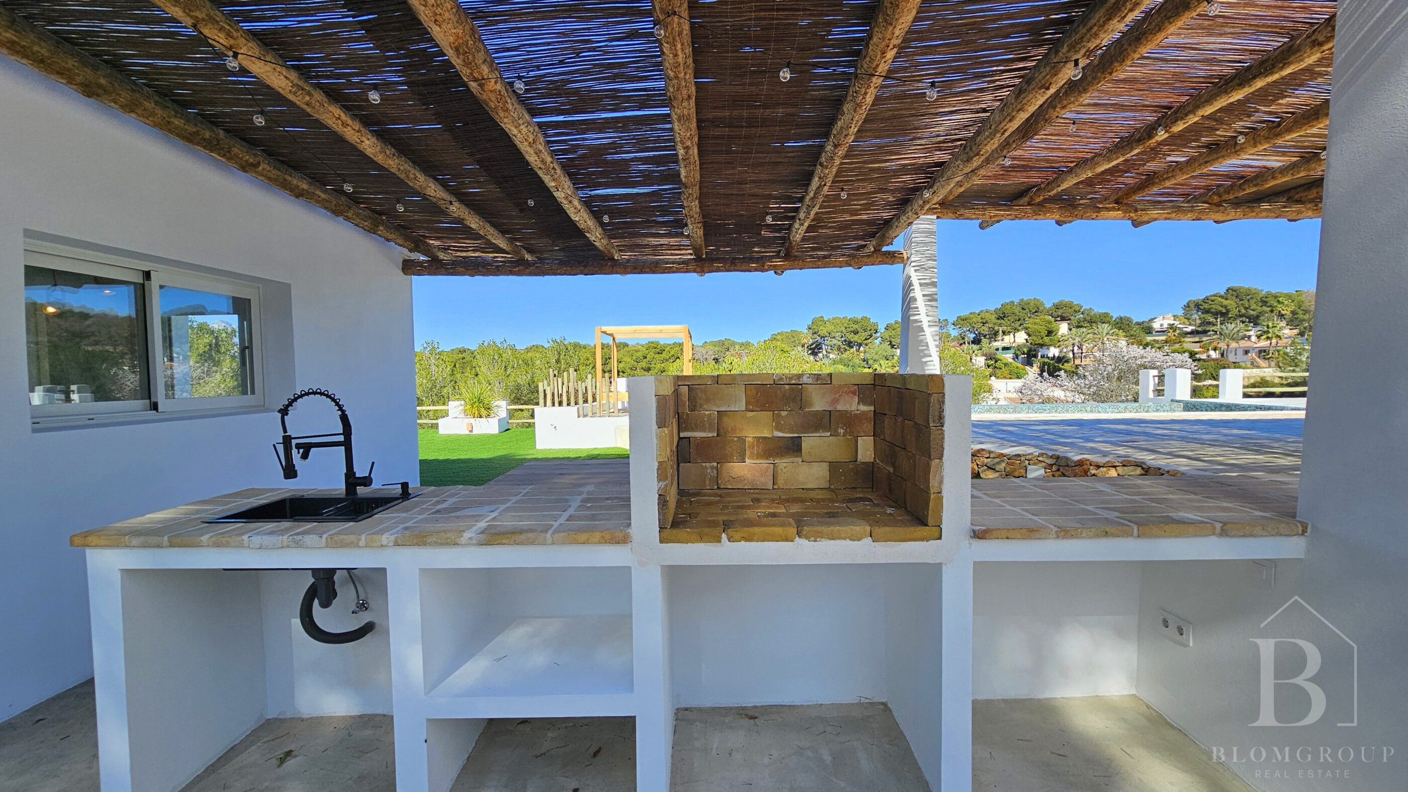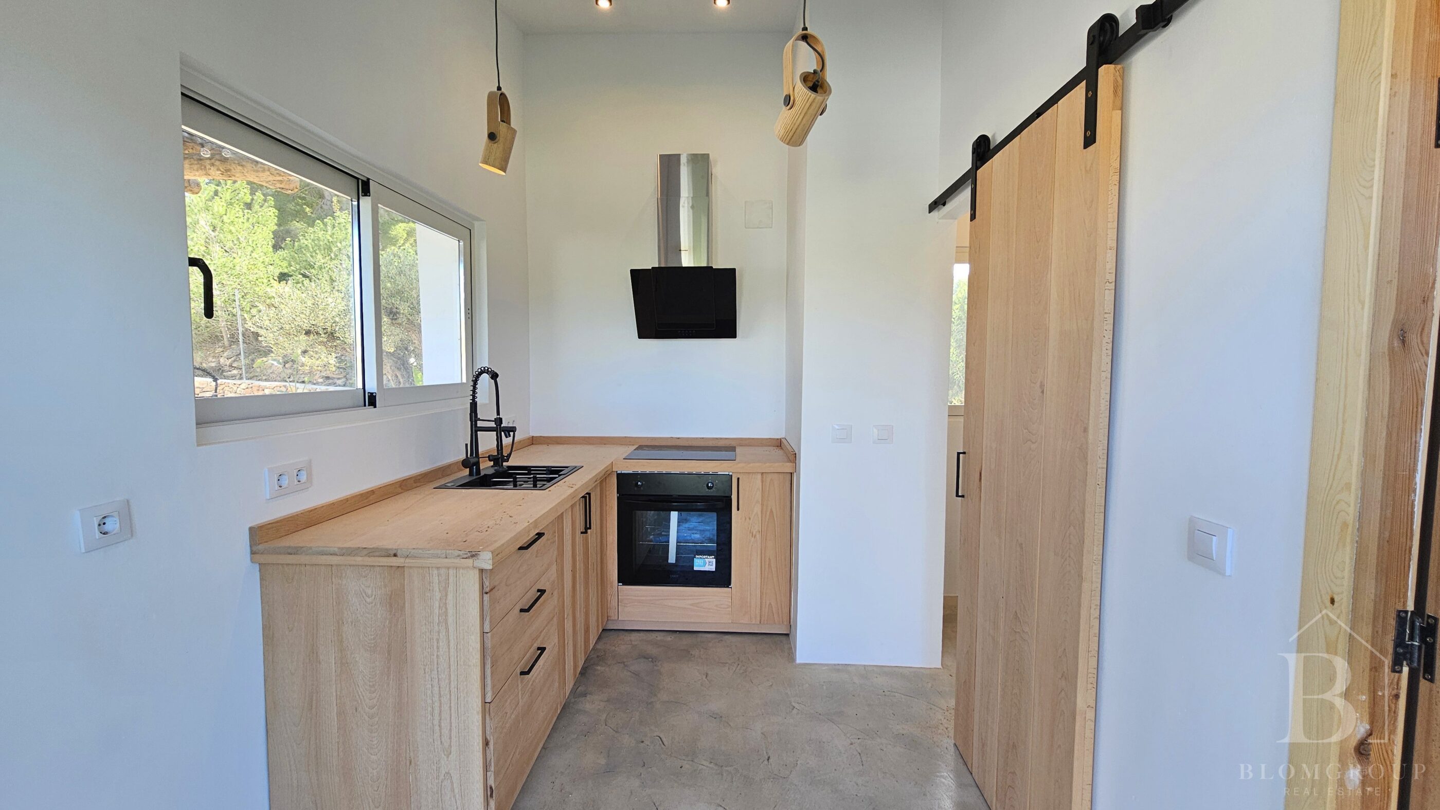 De moderne, open Amerikaanse keuken is overspoeld met natuurlijk licht dankzij de grote ramen, die ook direct uitzicht bieden op het omliggende landschap. Het pand beschikt over een groot terras met een buitenkeuken, perfect voor zomeravonden, en een infinity pool met panoramisch uitzicht op de bergen, ideaal om te ontspannen en te entertainen.