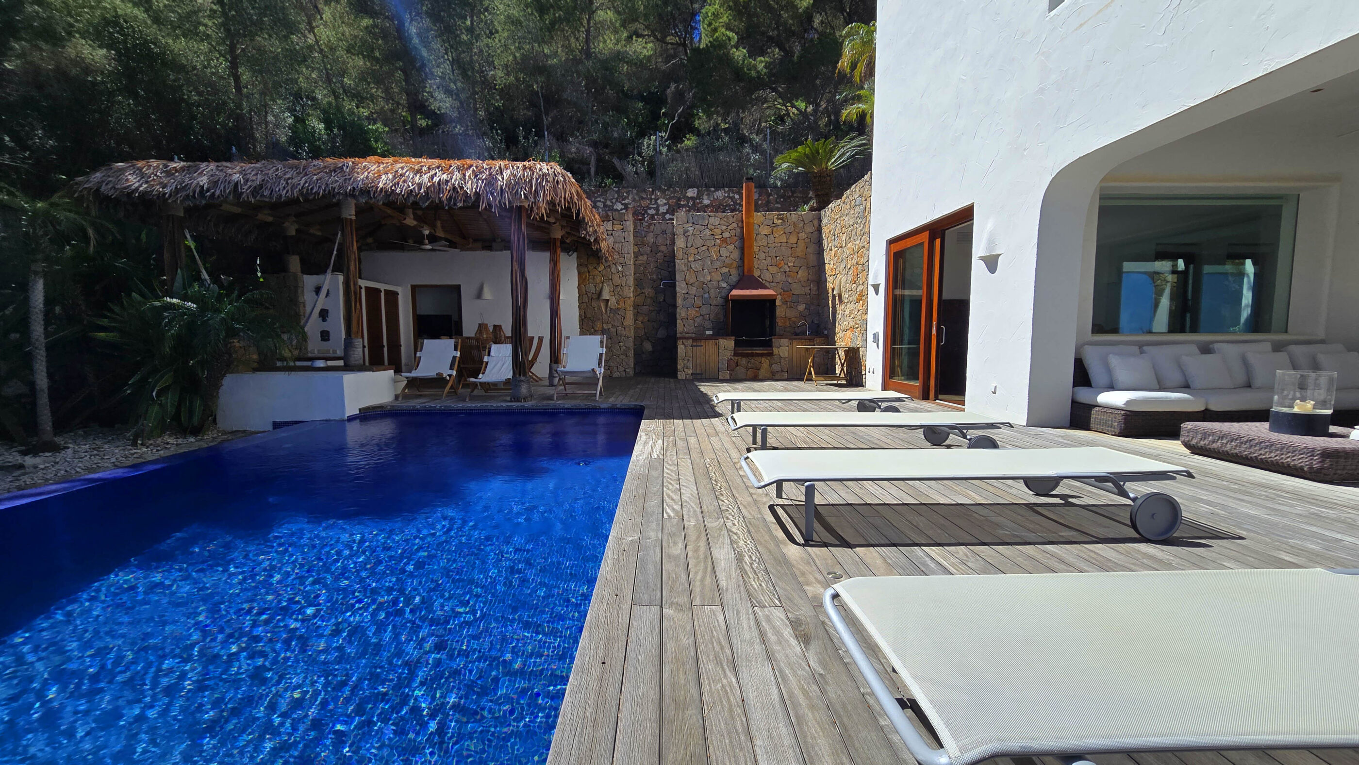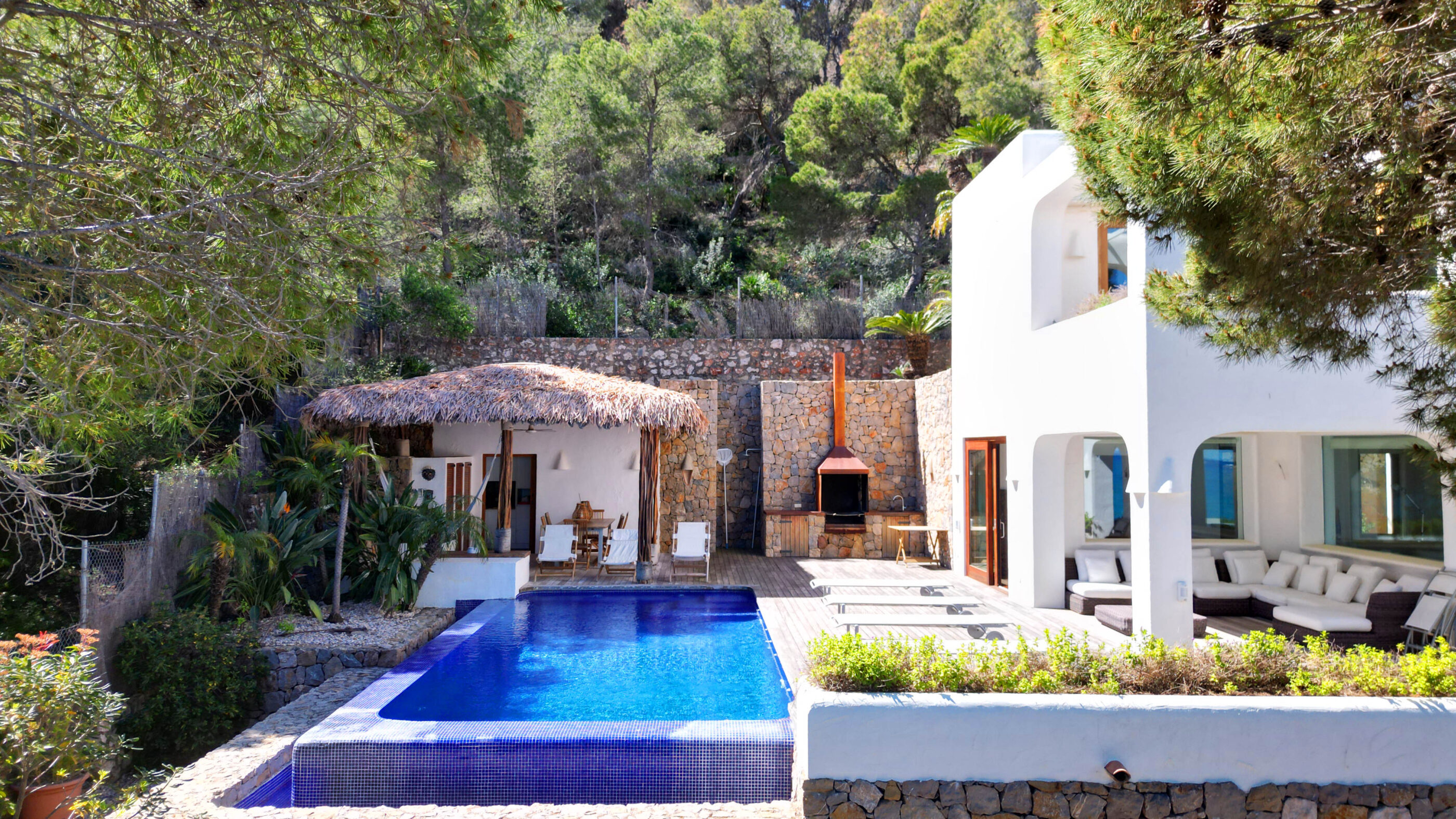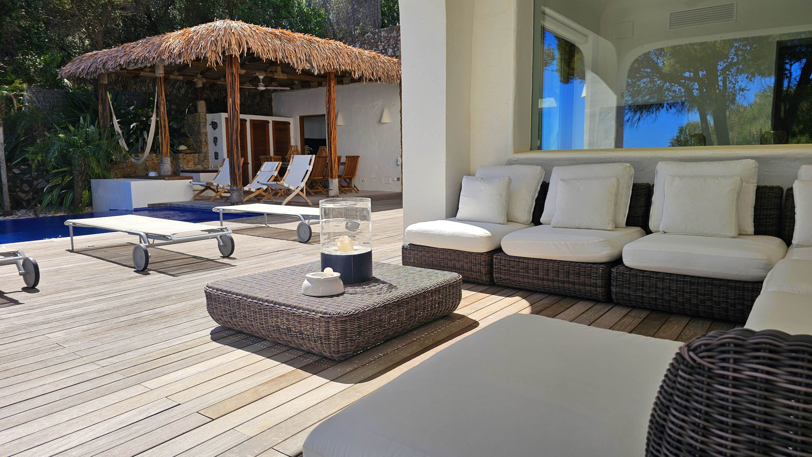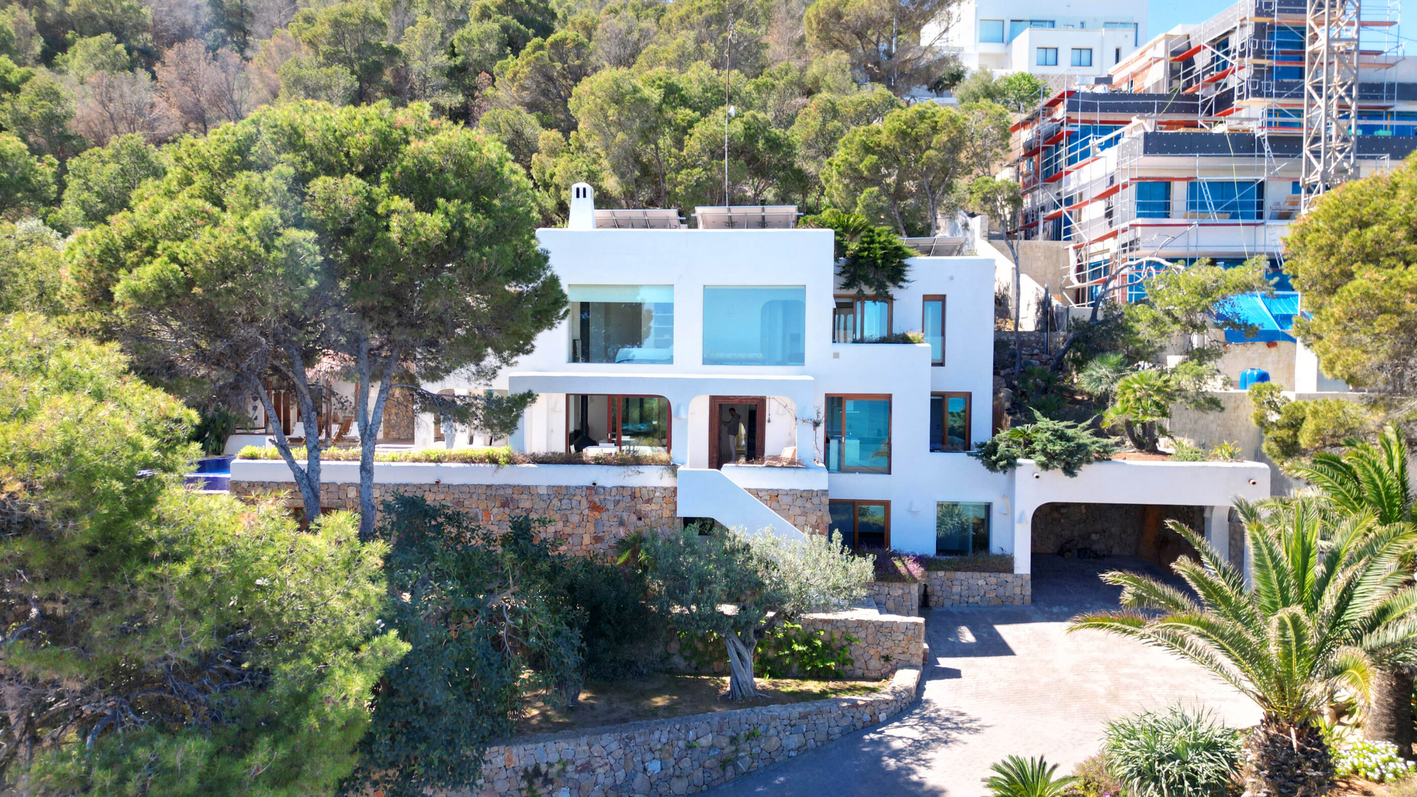 A true Mediterranean gem in Las Rotas, Dénia. This spectacular luxury villa, with its unmistakable Ibizan style, is a haven of peace in one of the most exclusive areas of the Costa Blanca. Nestled in a privileged location just steps from the sea and surrounded by tall pines that ensure privacy, this home perfectly blends elegance, comfort, and sustainability.