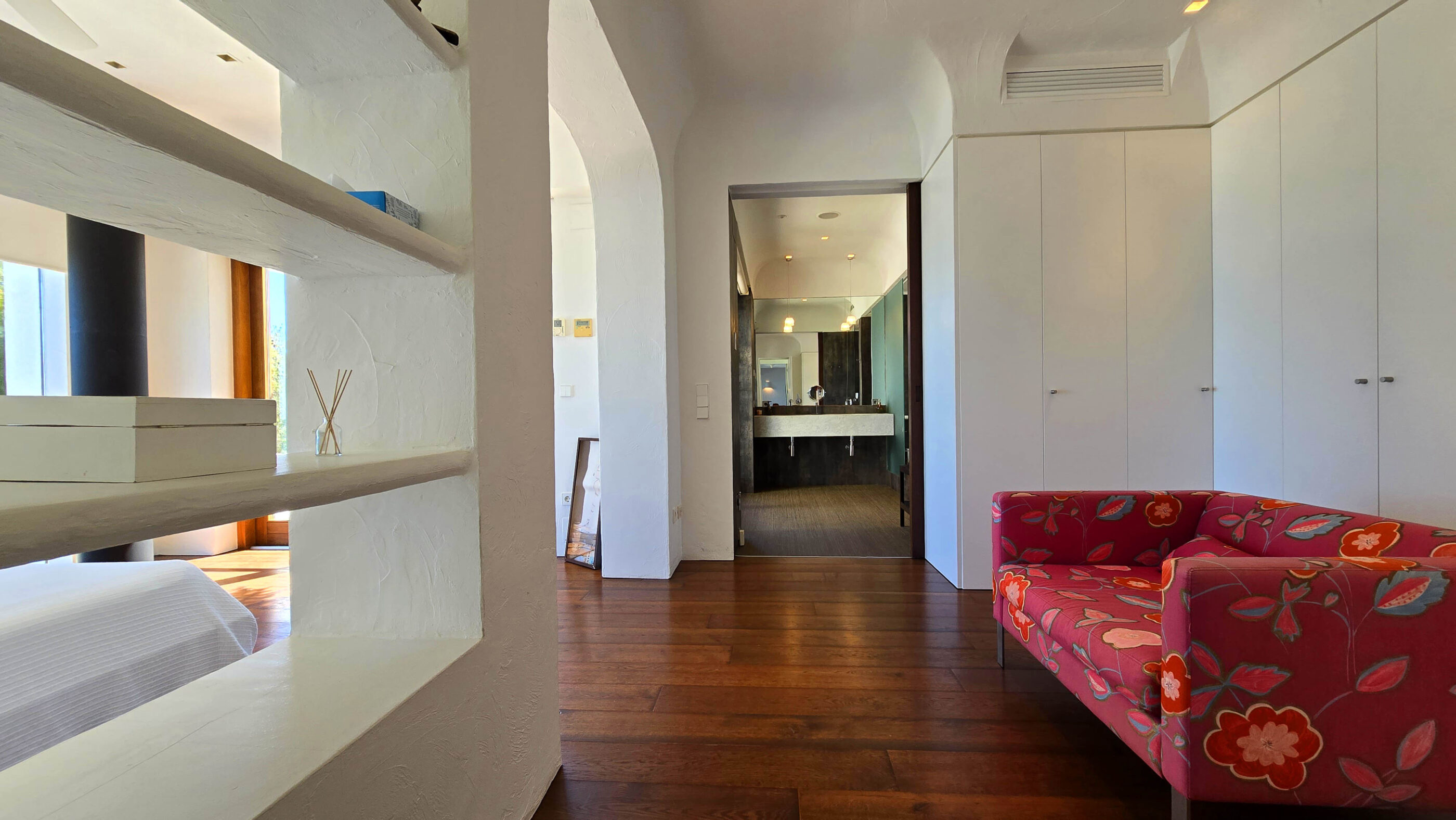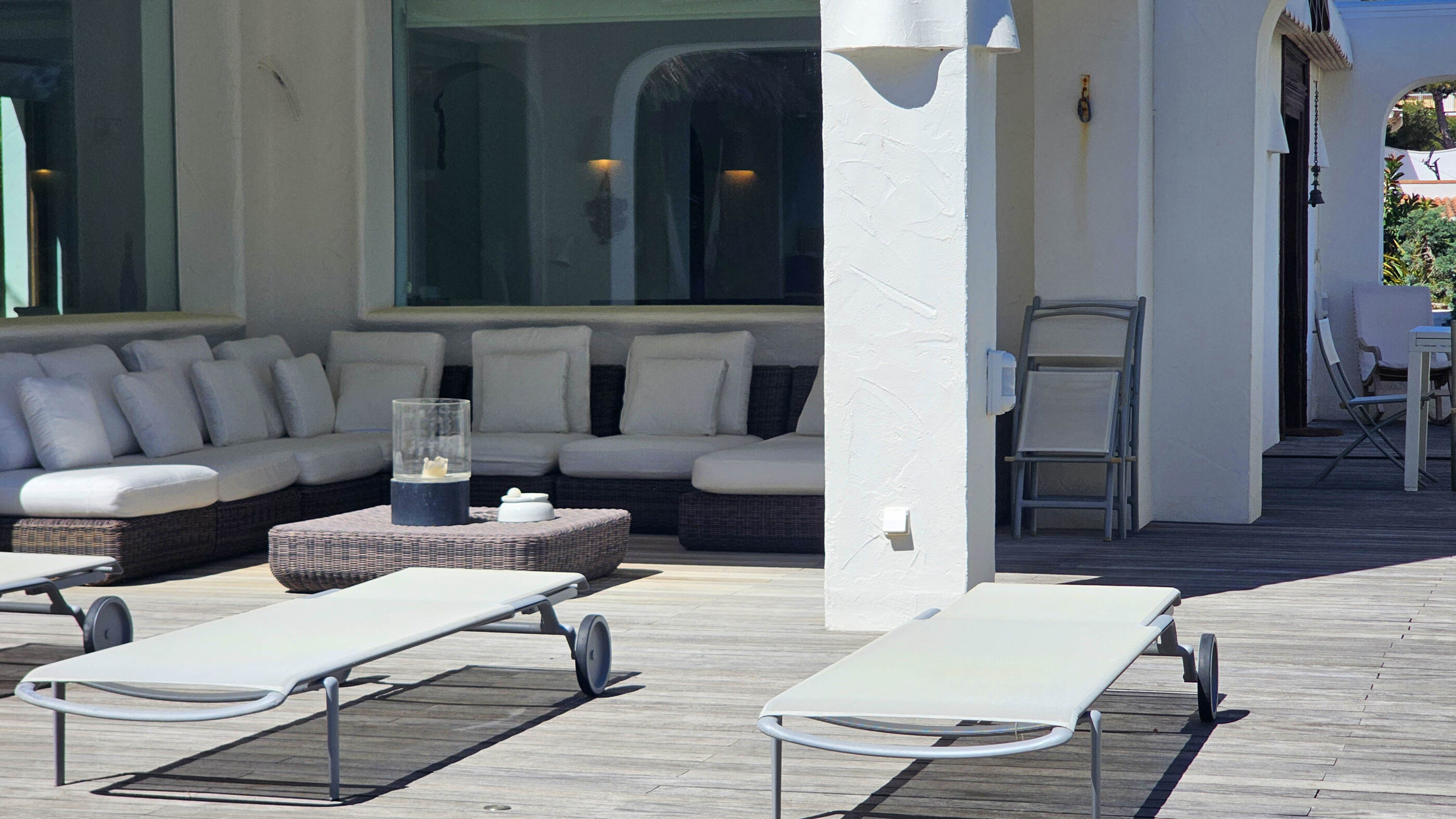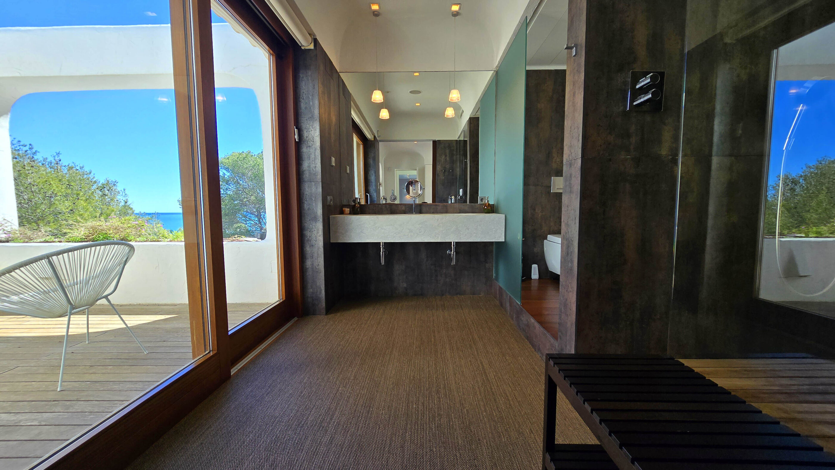Upstairs, two luxurious suites provide the ultimate retreat. Each suite boasts a private dressing room, en-suite bathroom, lounge area, and an exclusive terrace with panoramic Mediterranean views.
