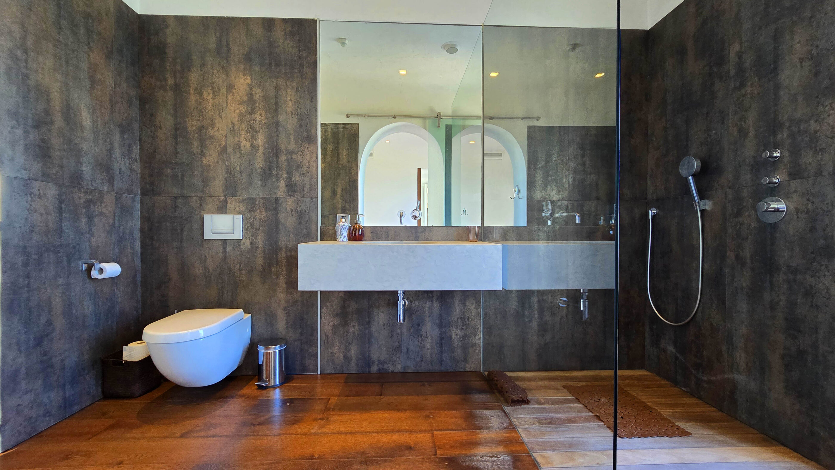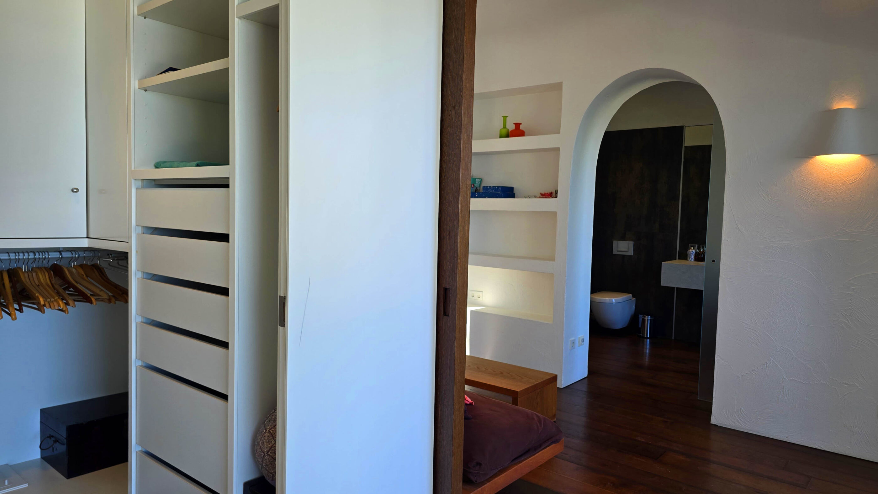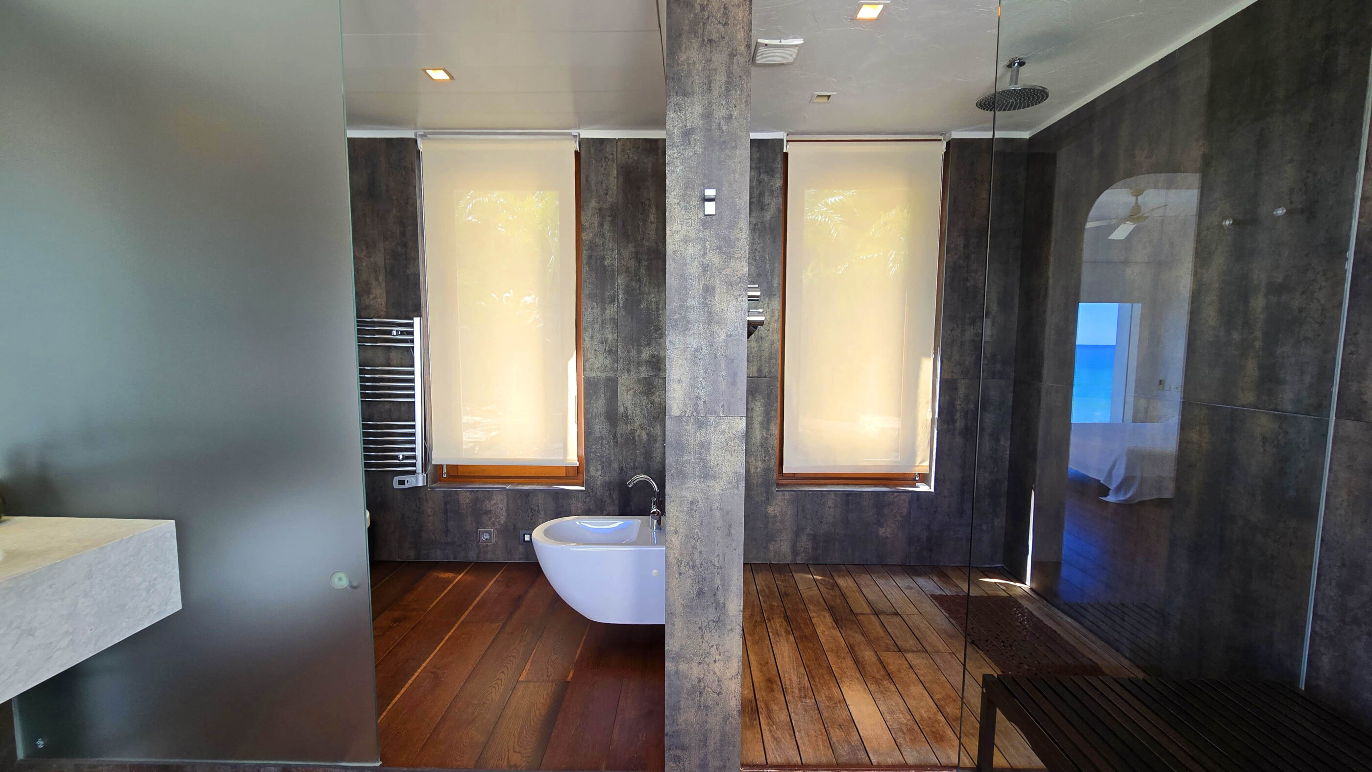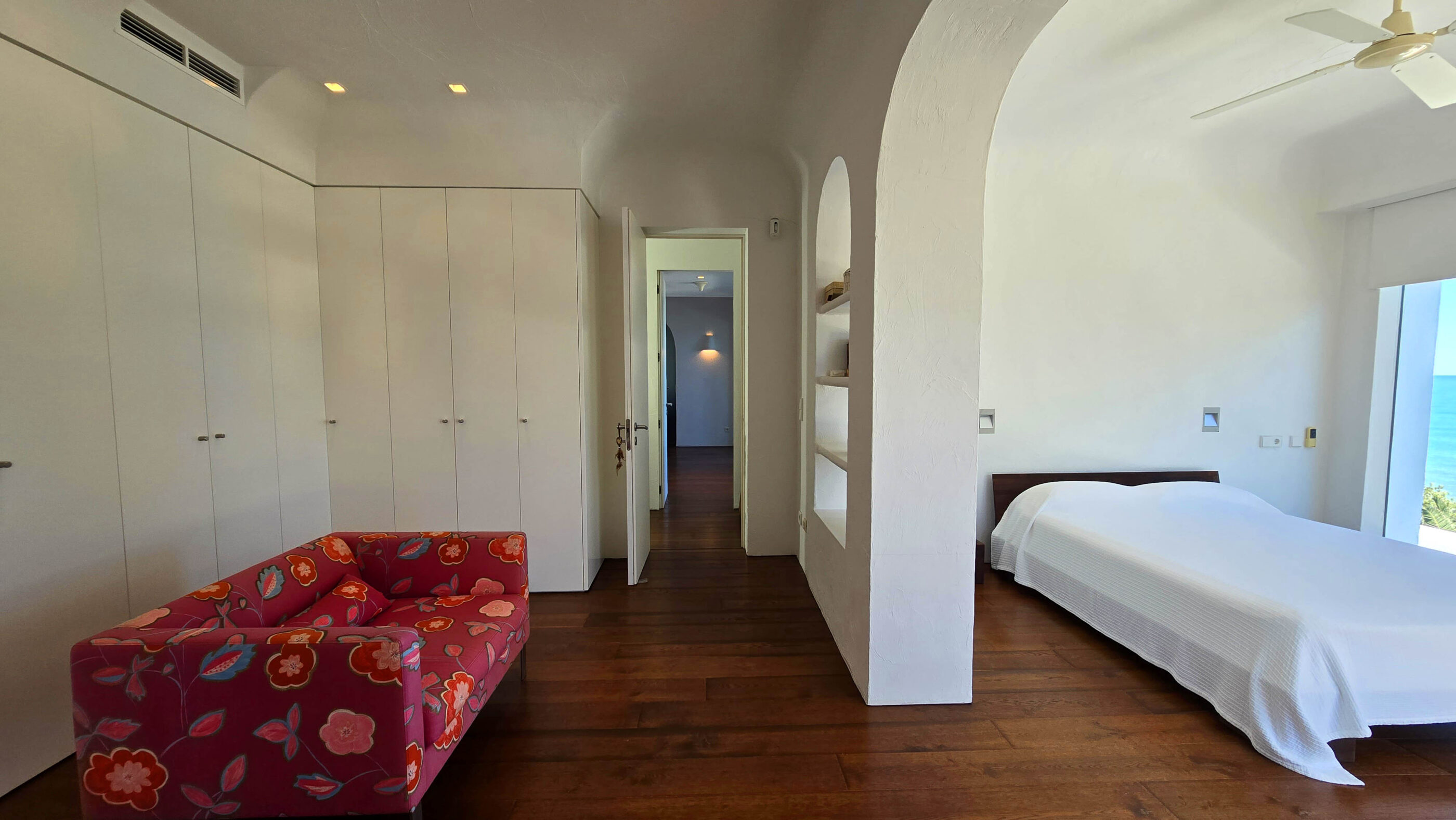 Upstairs, two luxurious suites provide the ultimate retreat. Each suite boasts a private dressing room, en-suite bathroom, lounge area, and an exclusive terrace with panoramic Mediterranean views.