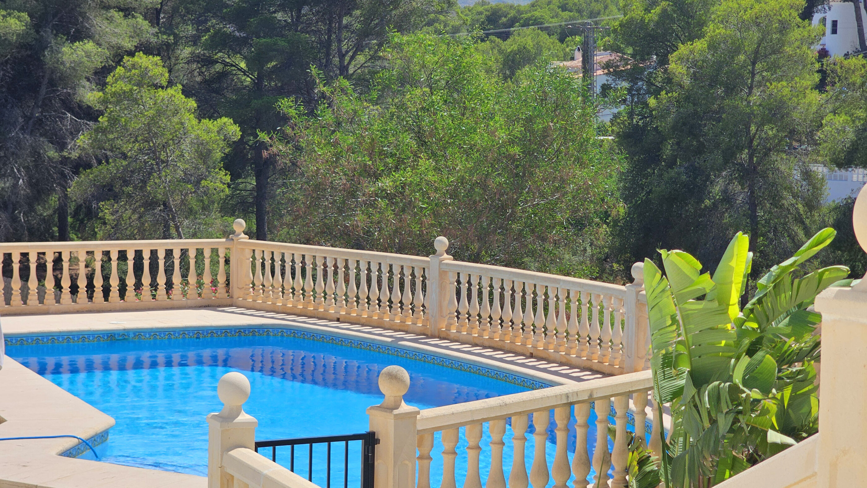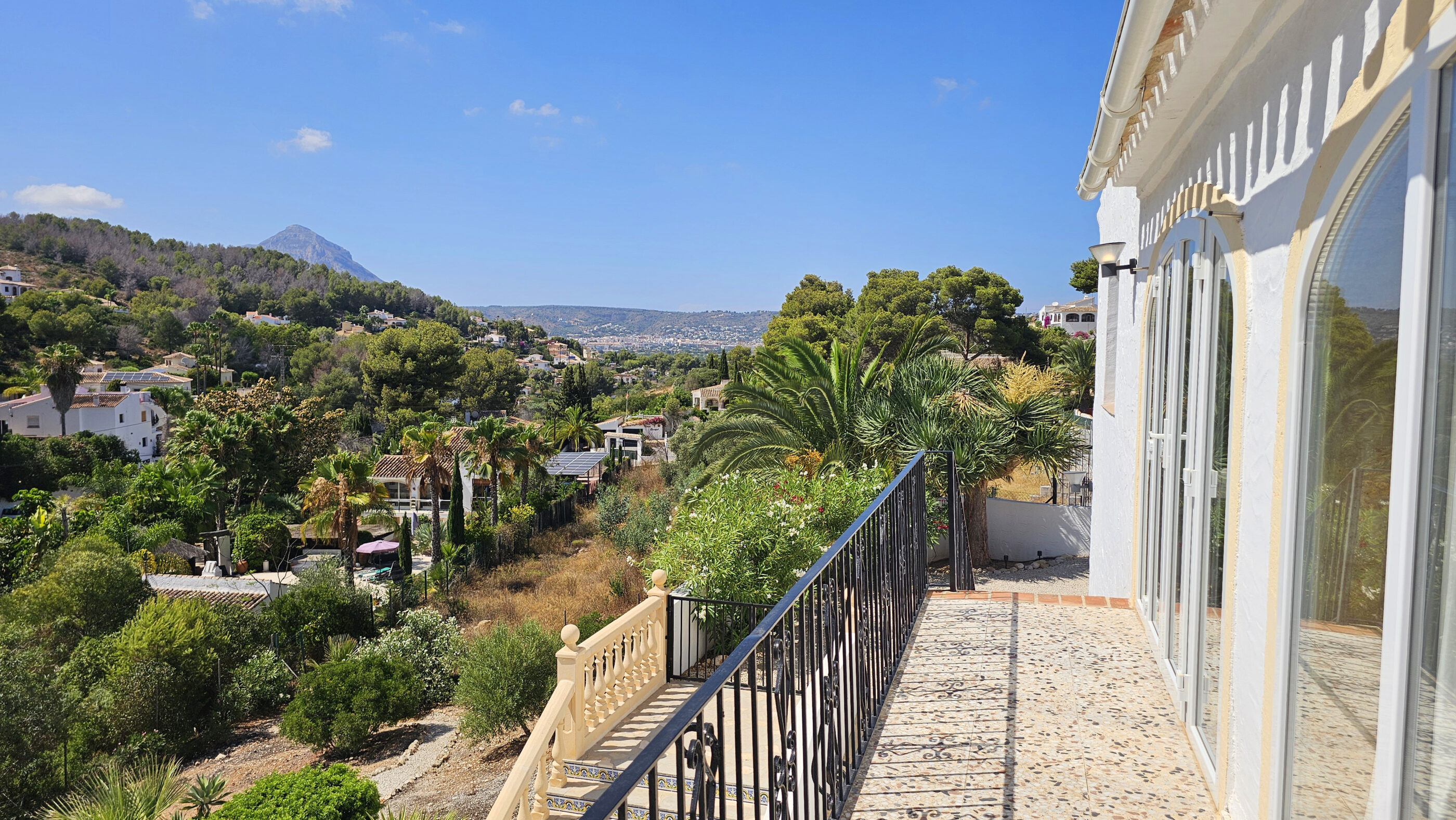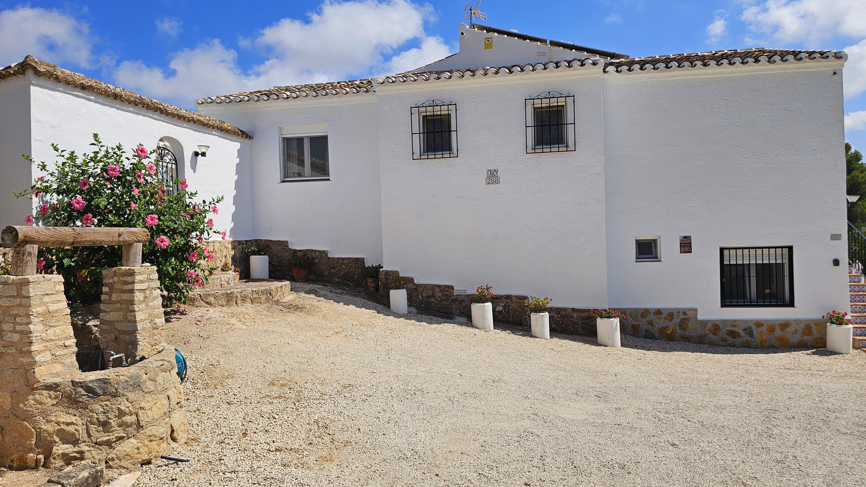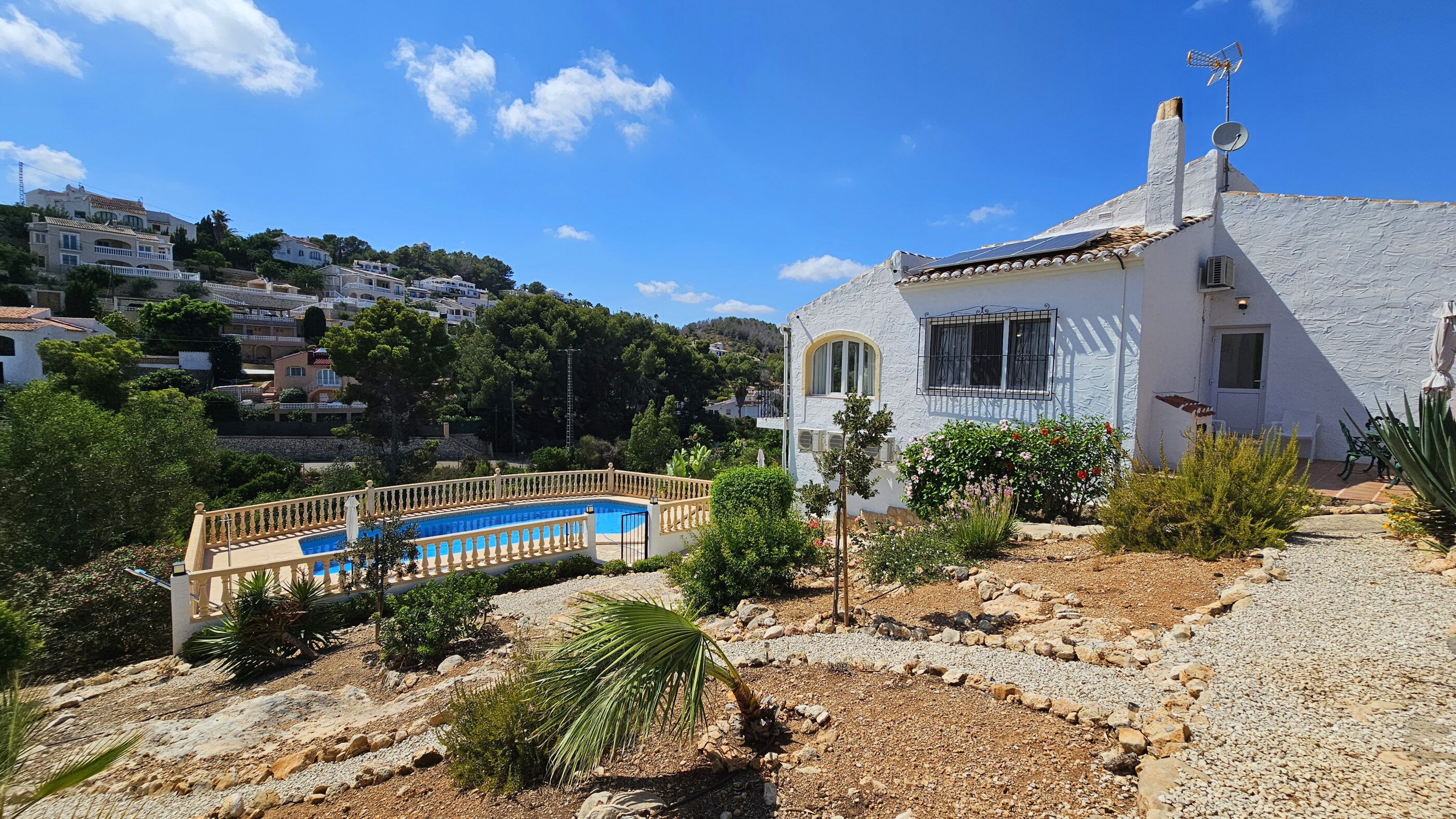 Een elektrische poort geeft toegang tot een ruime oprit met voldoende parkeergelegenheid voor meerdere voertuigen. Aan de voorzijde van de villa vormen een zonovergoten zwembad en ruime terrassen de perfecte achtergrond om te genieten van het benijdenswaardige klimaat van Jávea.