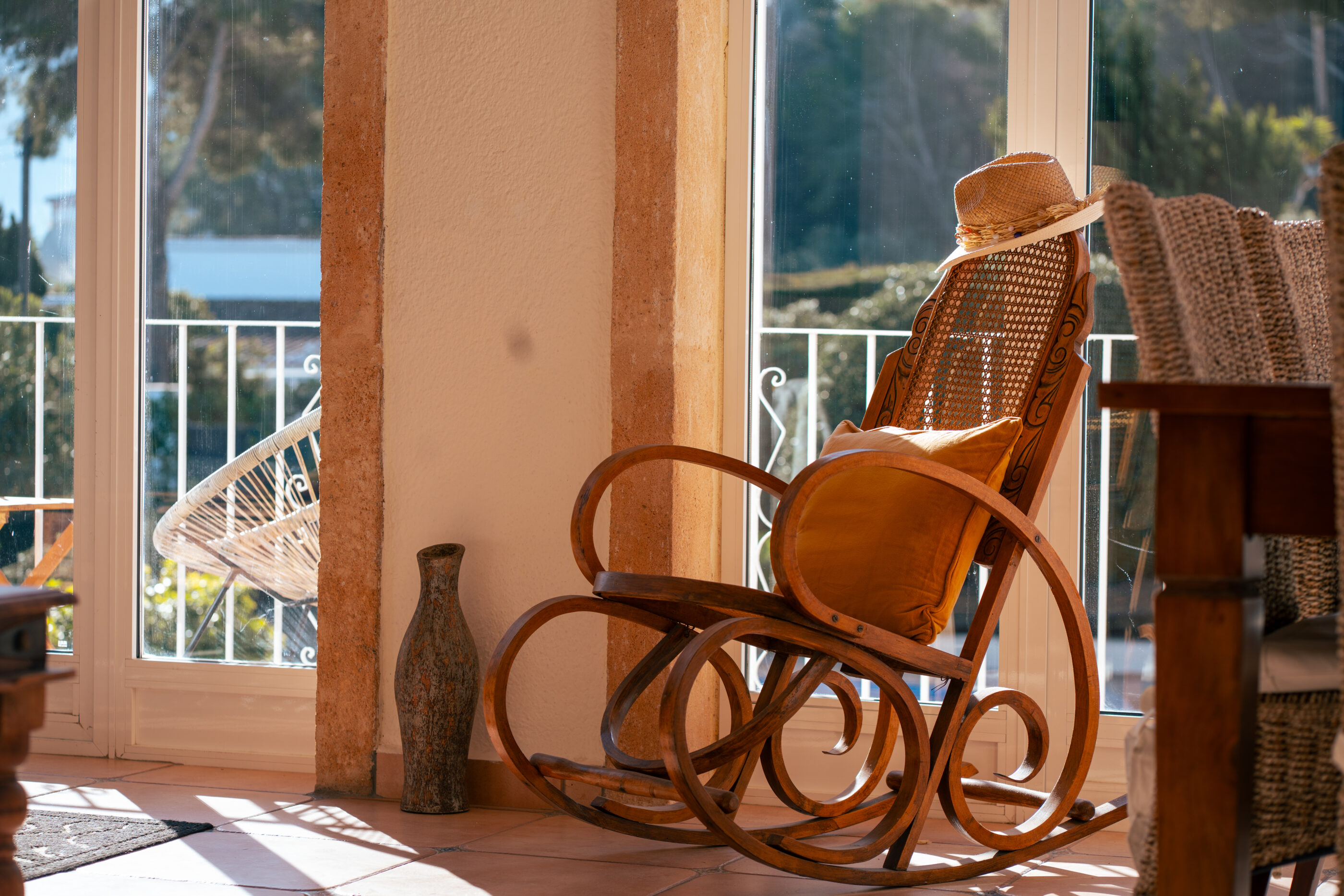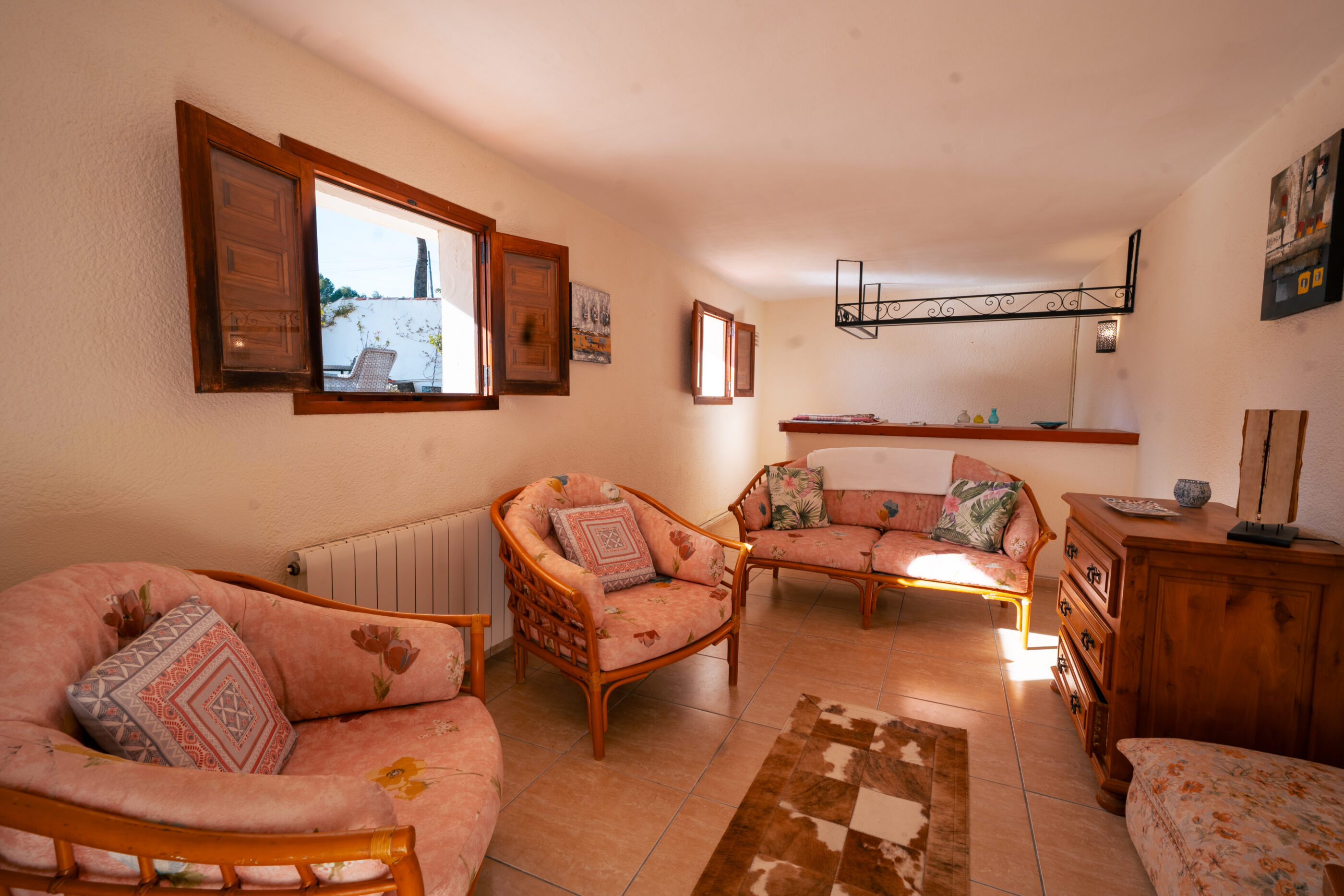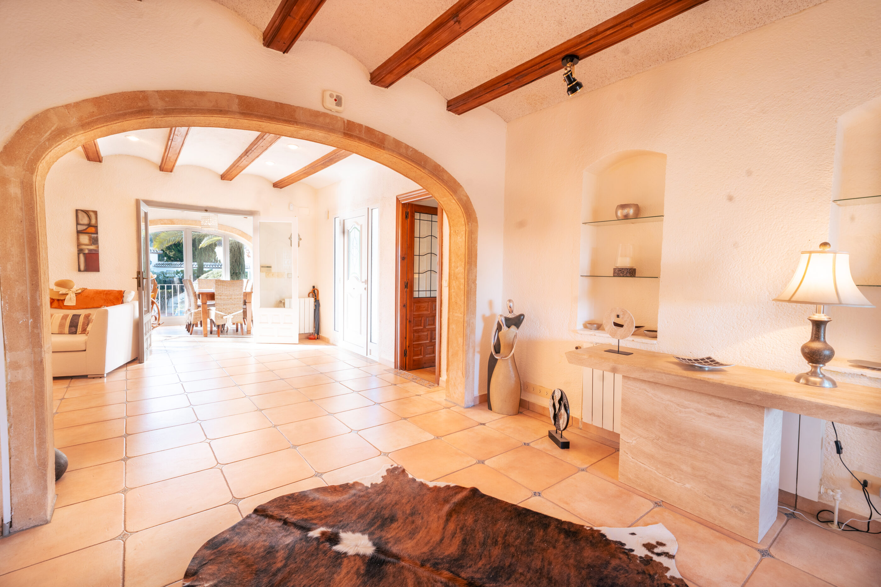 The house offers 465 m² built over two floors and was, like all homes in La Lluca, constructed to a high standard. From the moment you enter, the layout feels logical and calm. A central hallway connects to the main living room, which flows naturally into what was originally the naya. This space has been enclosed and integrated into the living area, creating a bright, generous room that works equally well in summer and winter.