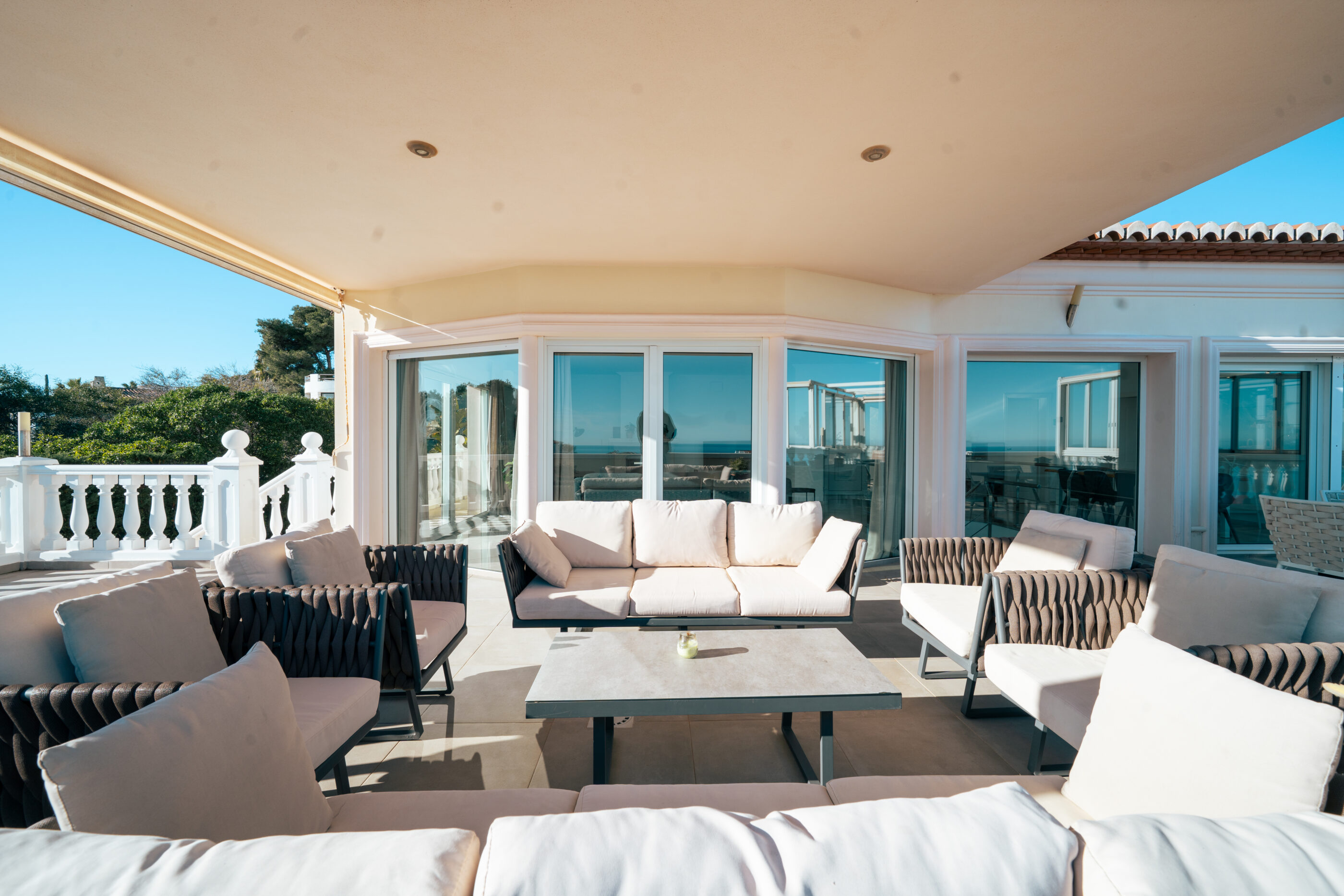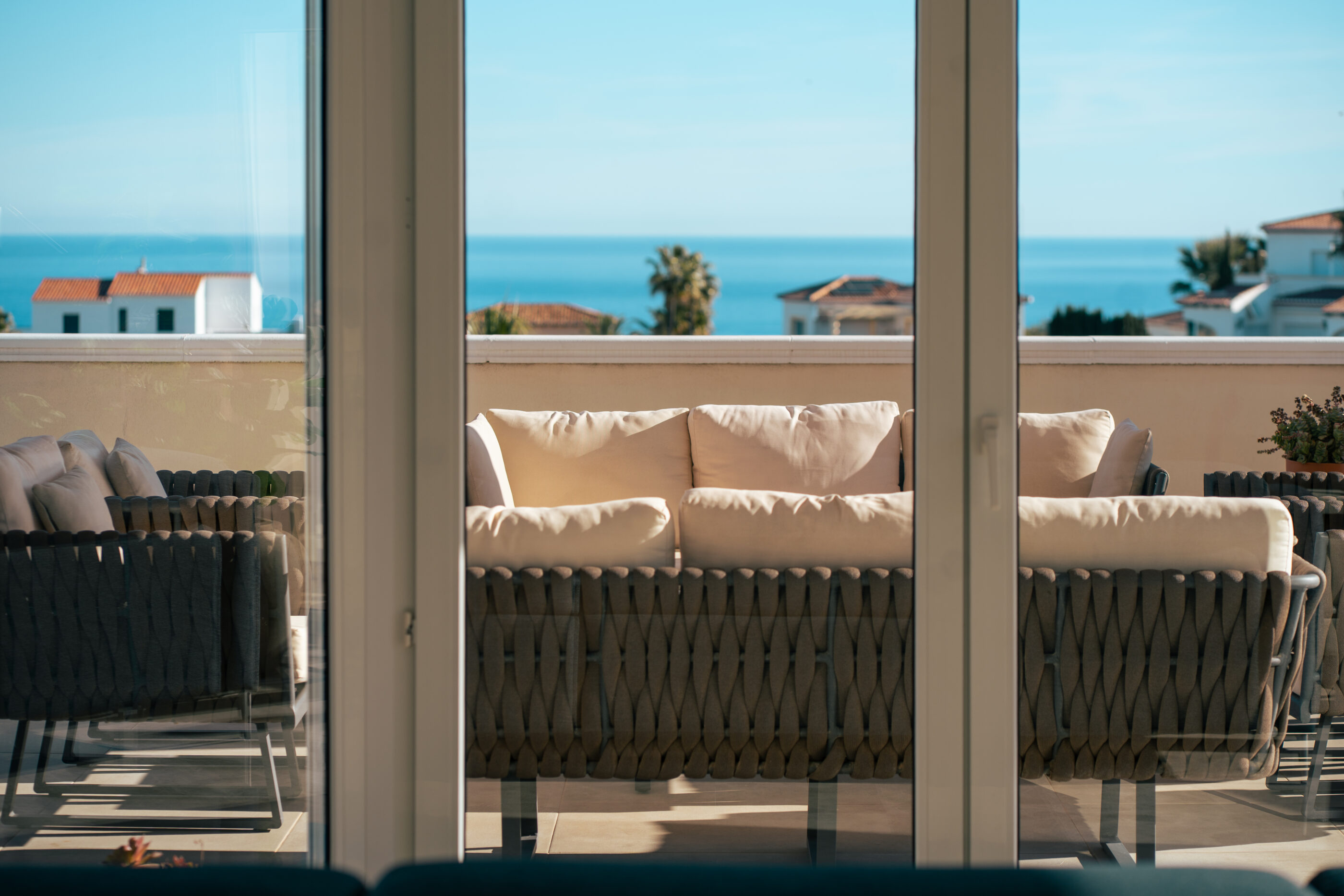 The upper floor is the heart of the house. A large open-plan living room and kitchen connect directly to an extensive terrace, creating a comfortable indoor-outdoor flow. From here, the sea views are wide and uninterrupted, making this level ideal for daily living and entertaining.