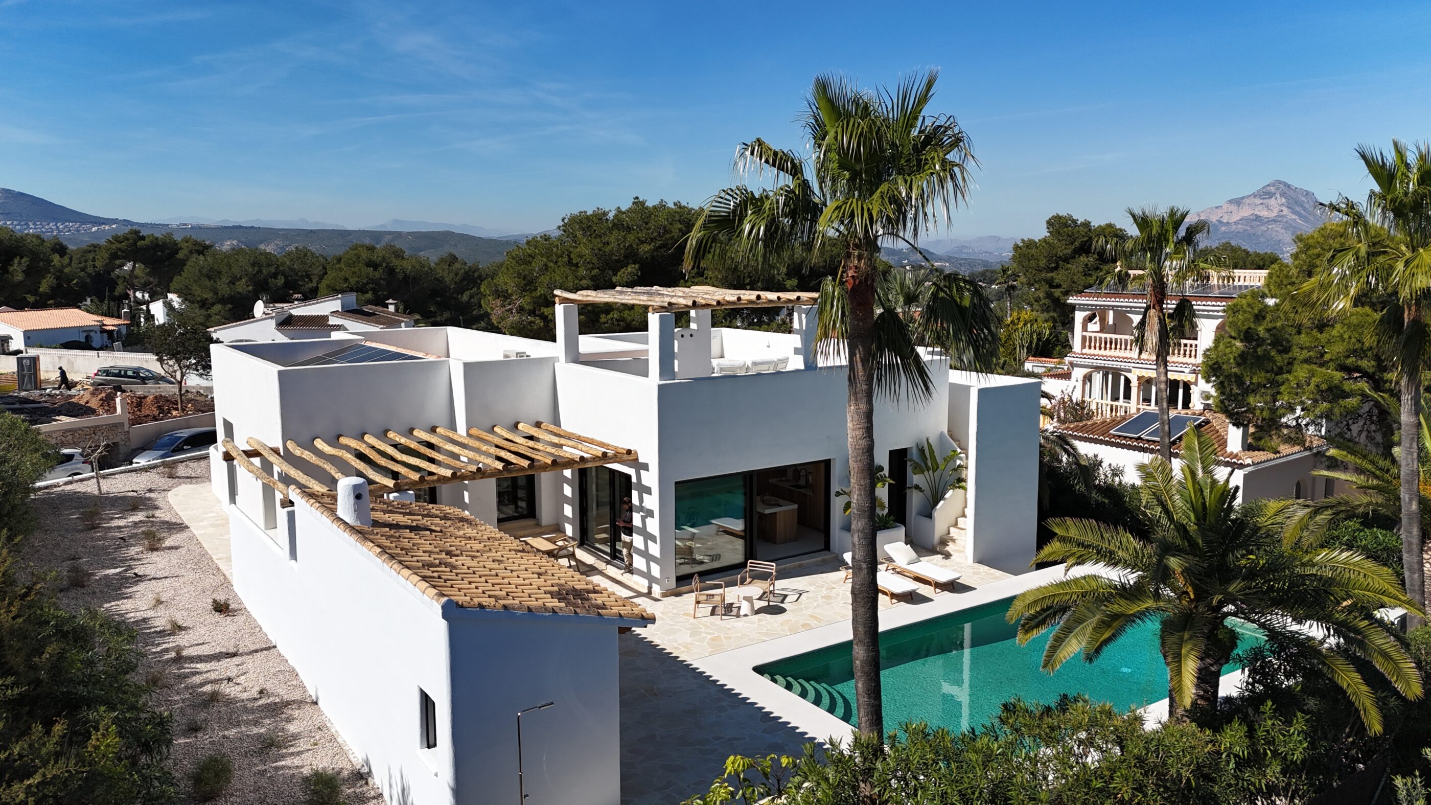 Set in the quiet residential area of Balcón al Mar in Jávea, this modern villa blends clean contemporary lines with subtle Ibizan character. It is a home designed to be lived in comfortably year-round, with a strong focus on light, flow, and energy efficiency. Supermarkets and restaurants are close by, while Arenal Beach is just a 10-minute drive away, making the location both practical and peaceful.