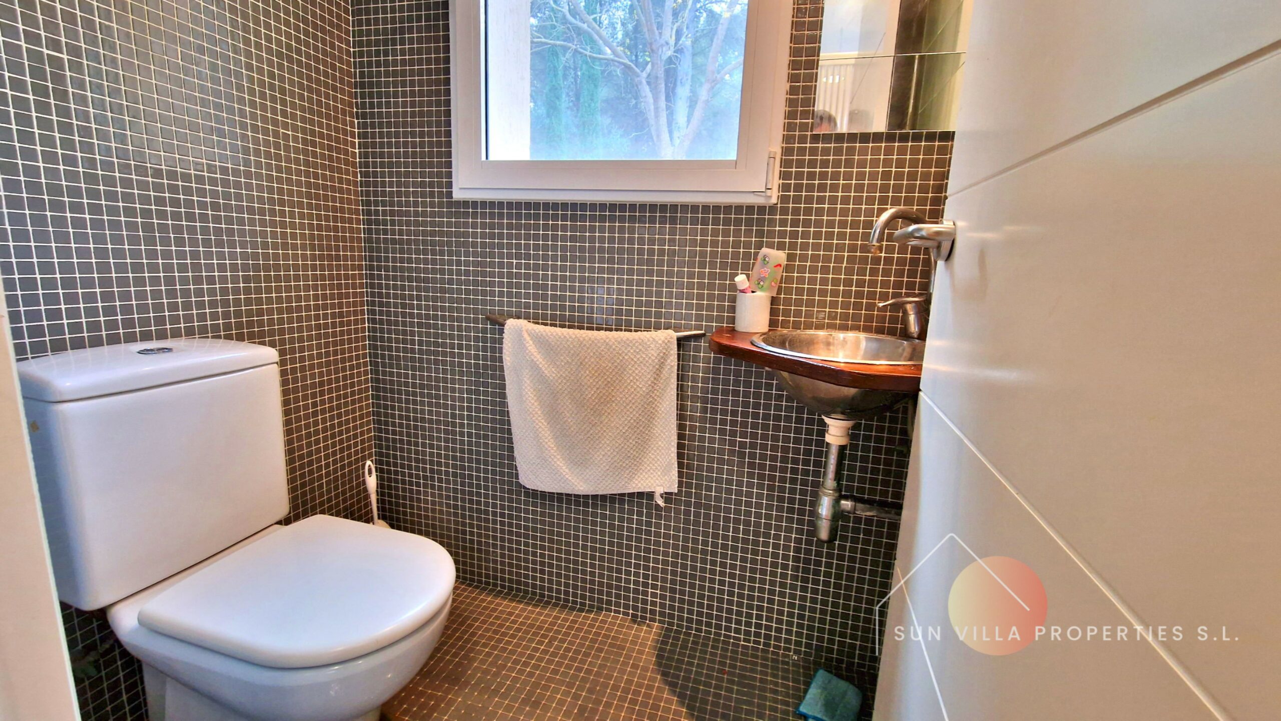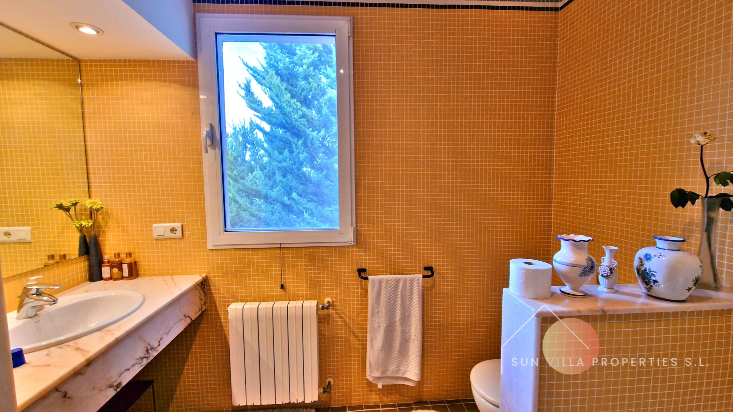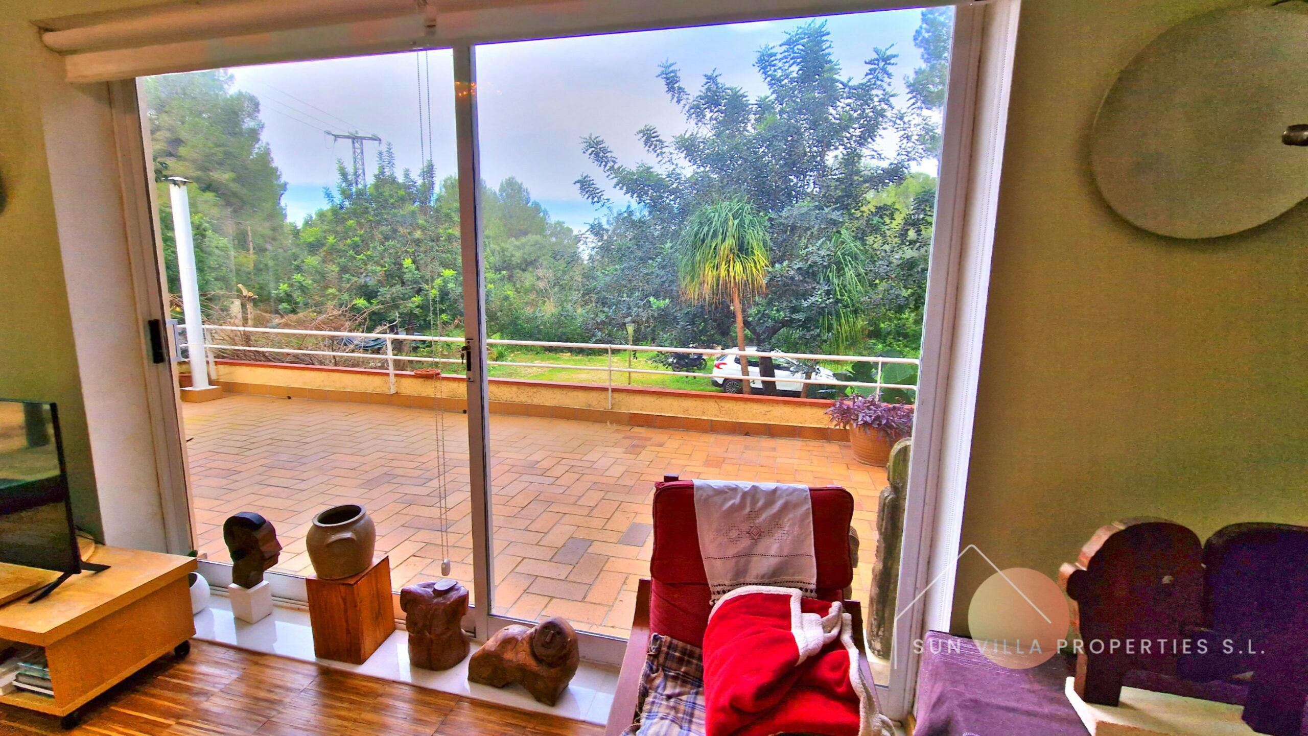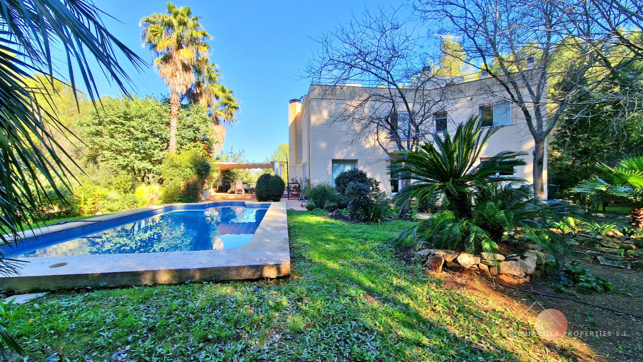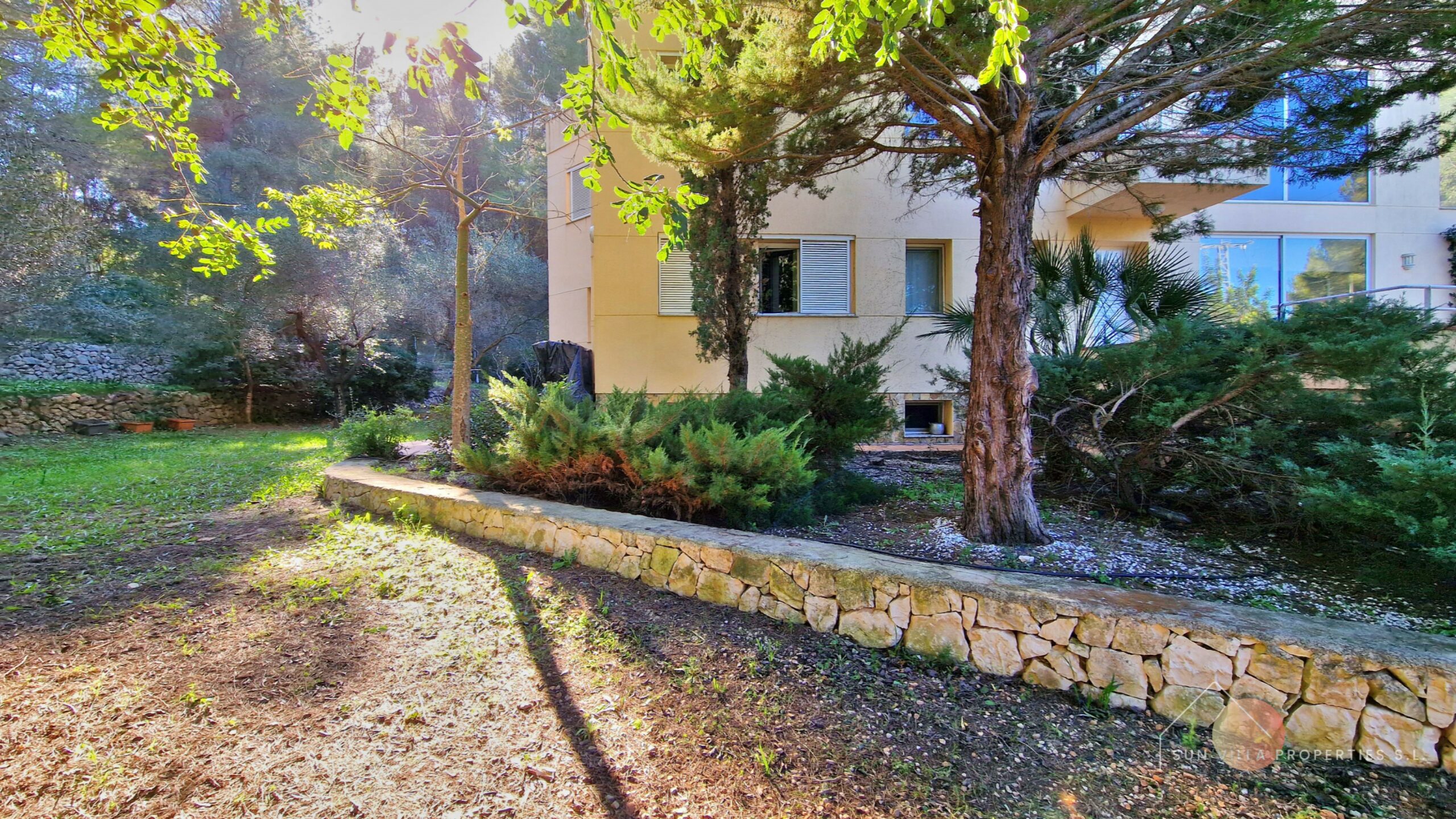 Buiten hebben we 5300m2 volledig omheind perceel met fruitbomen, pijnbomen en algarrobobomen.