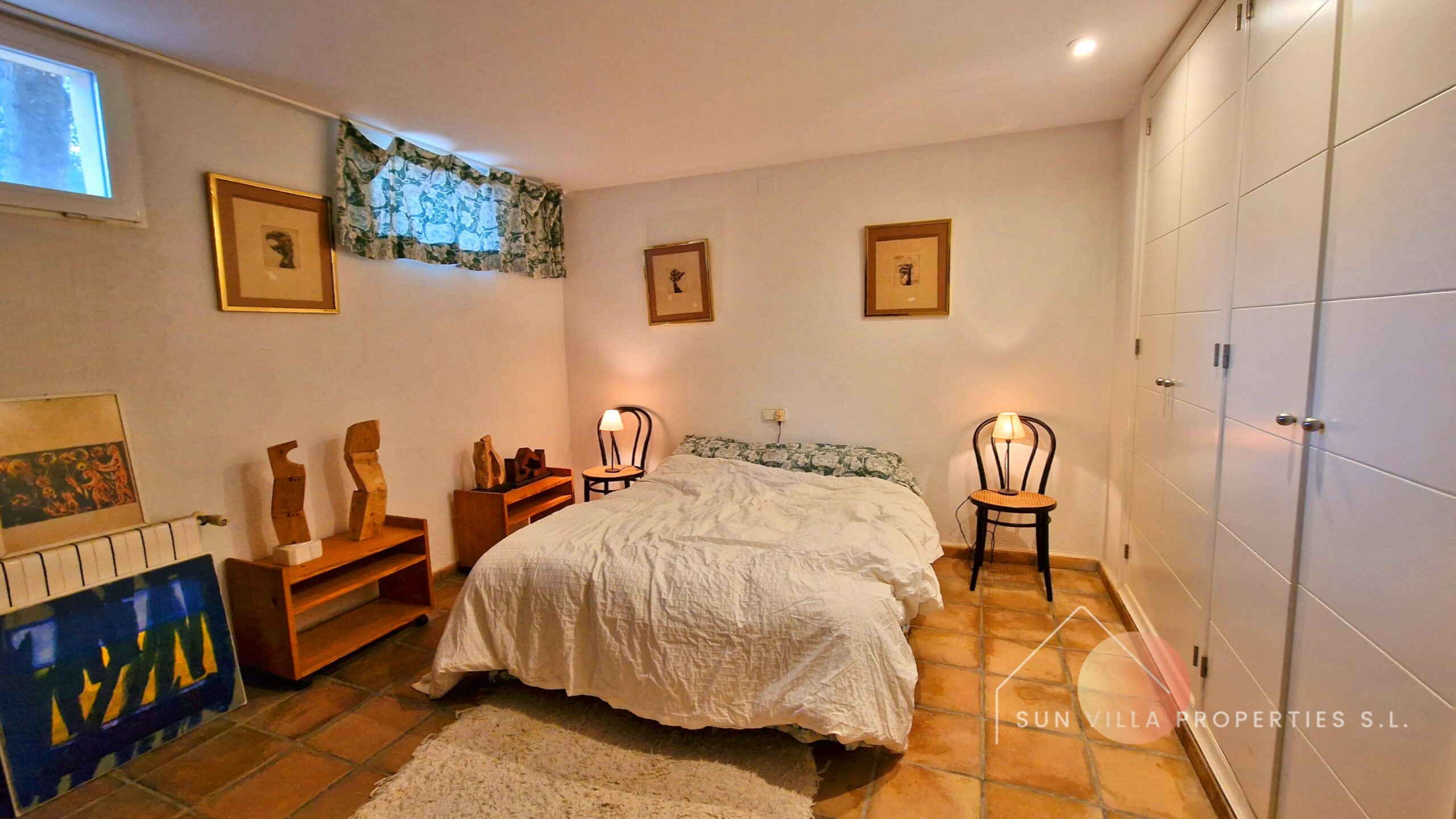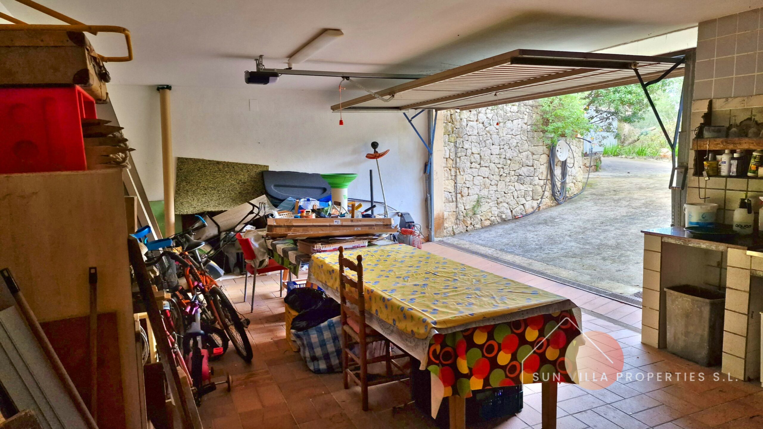 Het huis heeft 417m2 bebouwde oppervlakte, verdeeld over 3 verdiepingen. De semi-kelder met ramen heeft 197,74m2 verdeeld over een ruime dubbele garage, een grote werkplaats, de machinekamer (verwarmingssystemen, olietanks), een ruime woonkamer met een bodega, een kleine ruimte voor een keuken, een ruime tweepersoonskamer, en een woonkamer met een aangrenzende kamer die momenteel wordt gebruikt voor opslag.