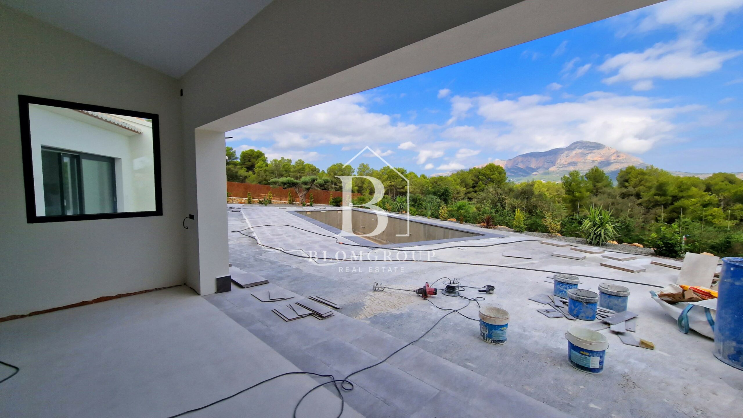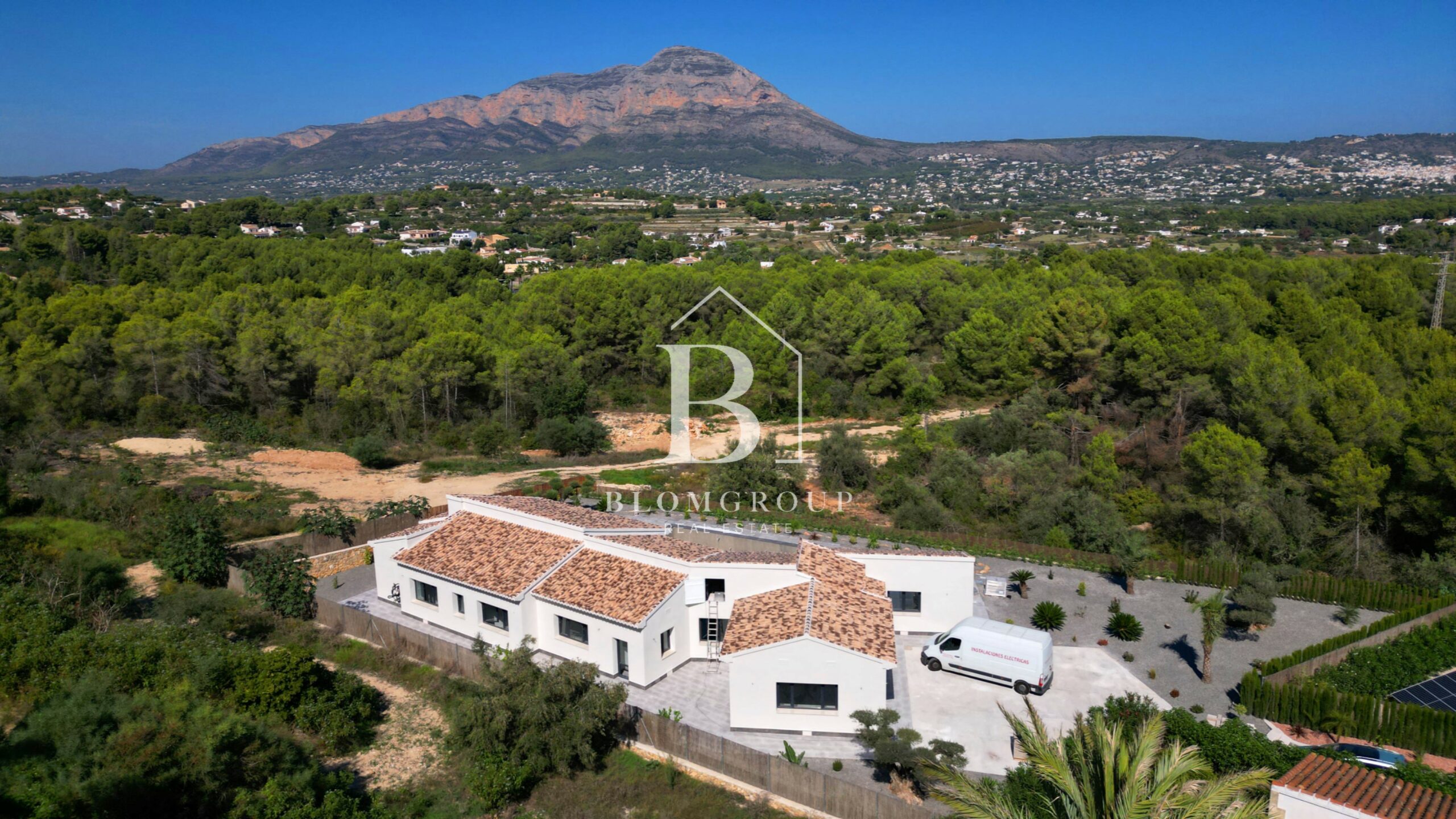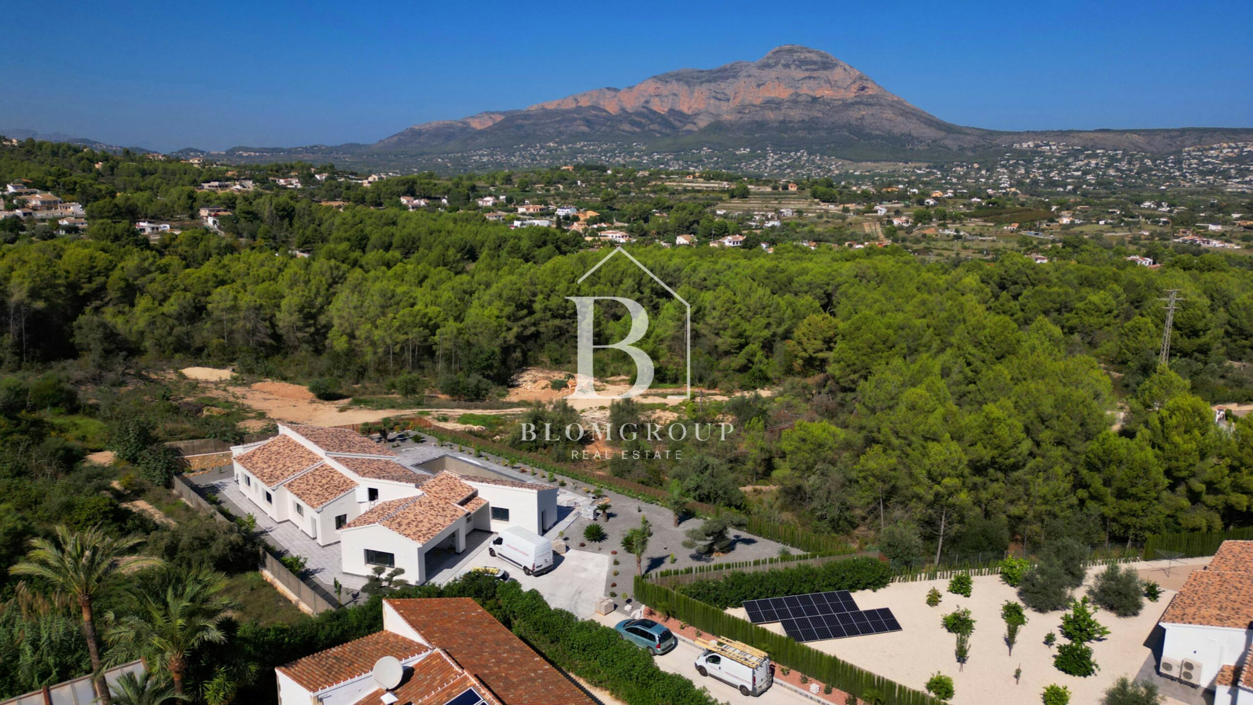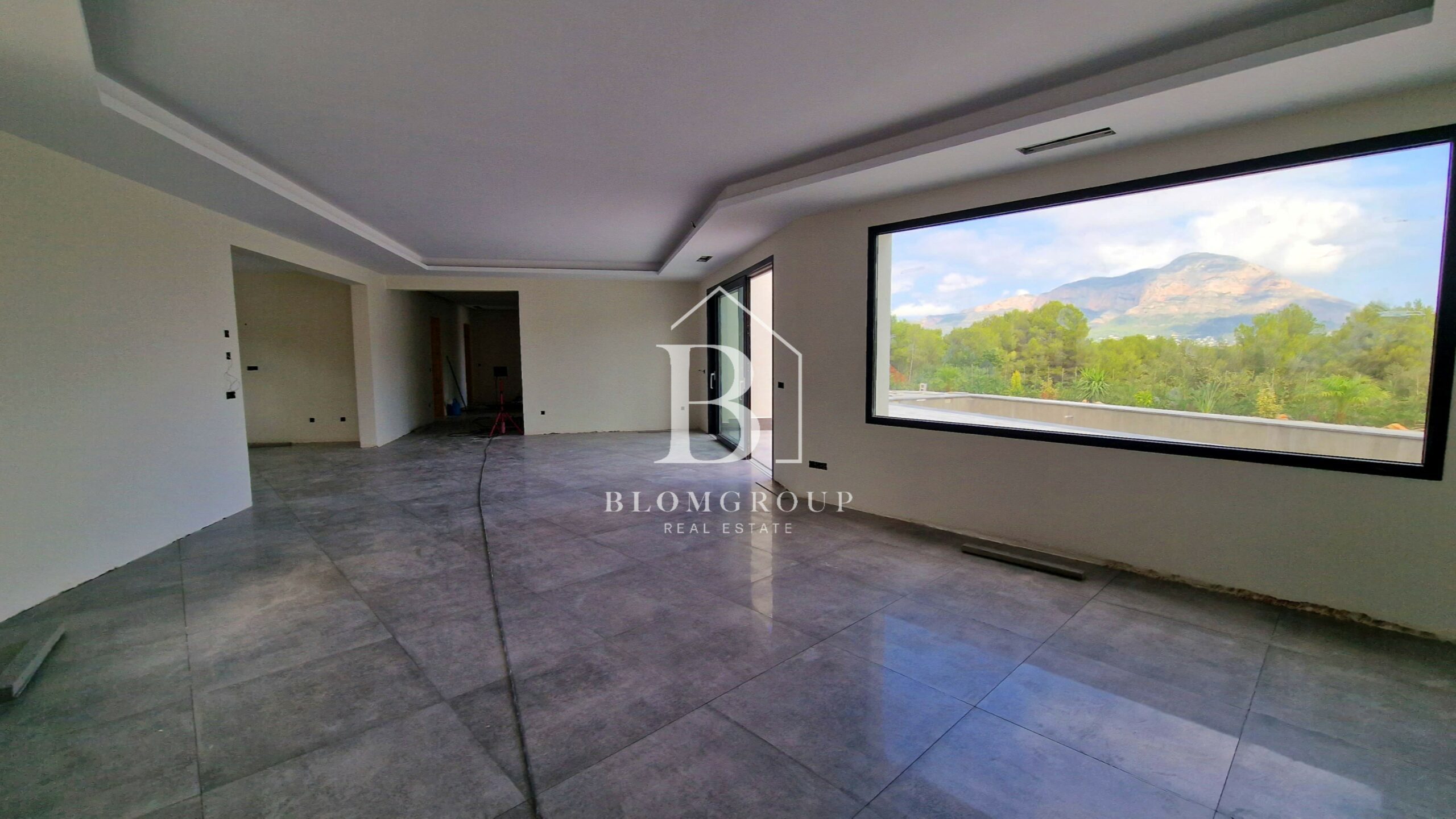 Als u via de voordeur of de ingang van de garage het pand binnenstapt, wordt u verwelkomd door een ruime en uitnodigende hal. Dit leidt tot een ruime en natuurlijk verlichte open woon- en eetkamer die naadloos aansluit bij de moderne keuken. De leefruimte strekt zich moeiteloos uit tot het buitenzwembad en het overdekte terras. Hier zijn de uitzichten op de majestueuze berg Montgó ronduit adembenemend en vormen ze een prachtige achtergrond voor uw dagelijkse leven.