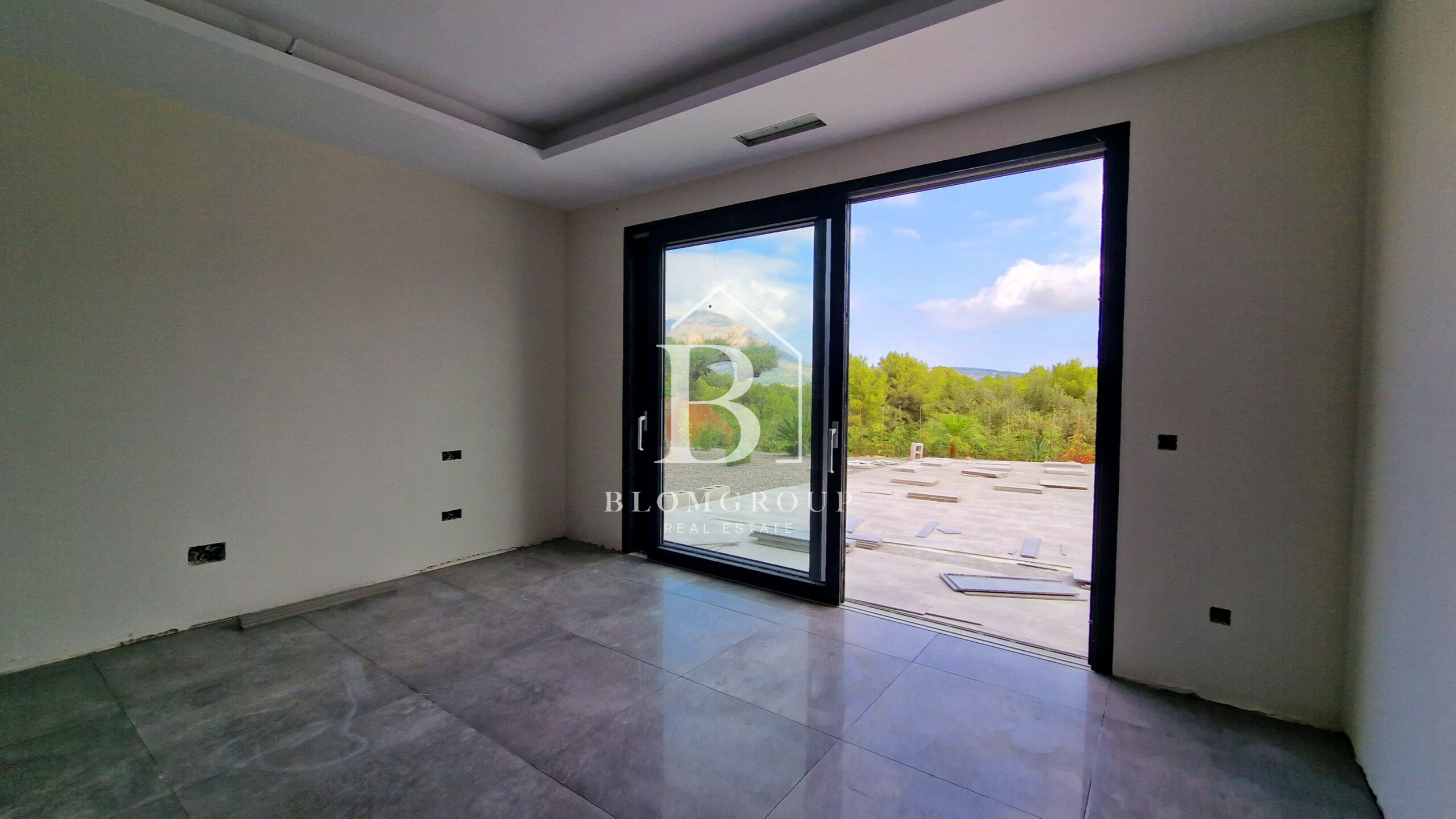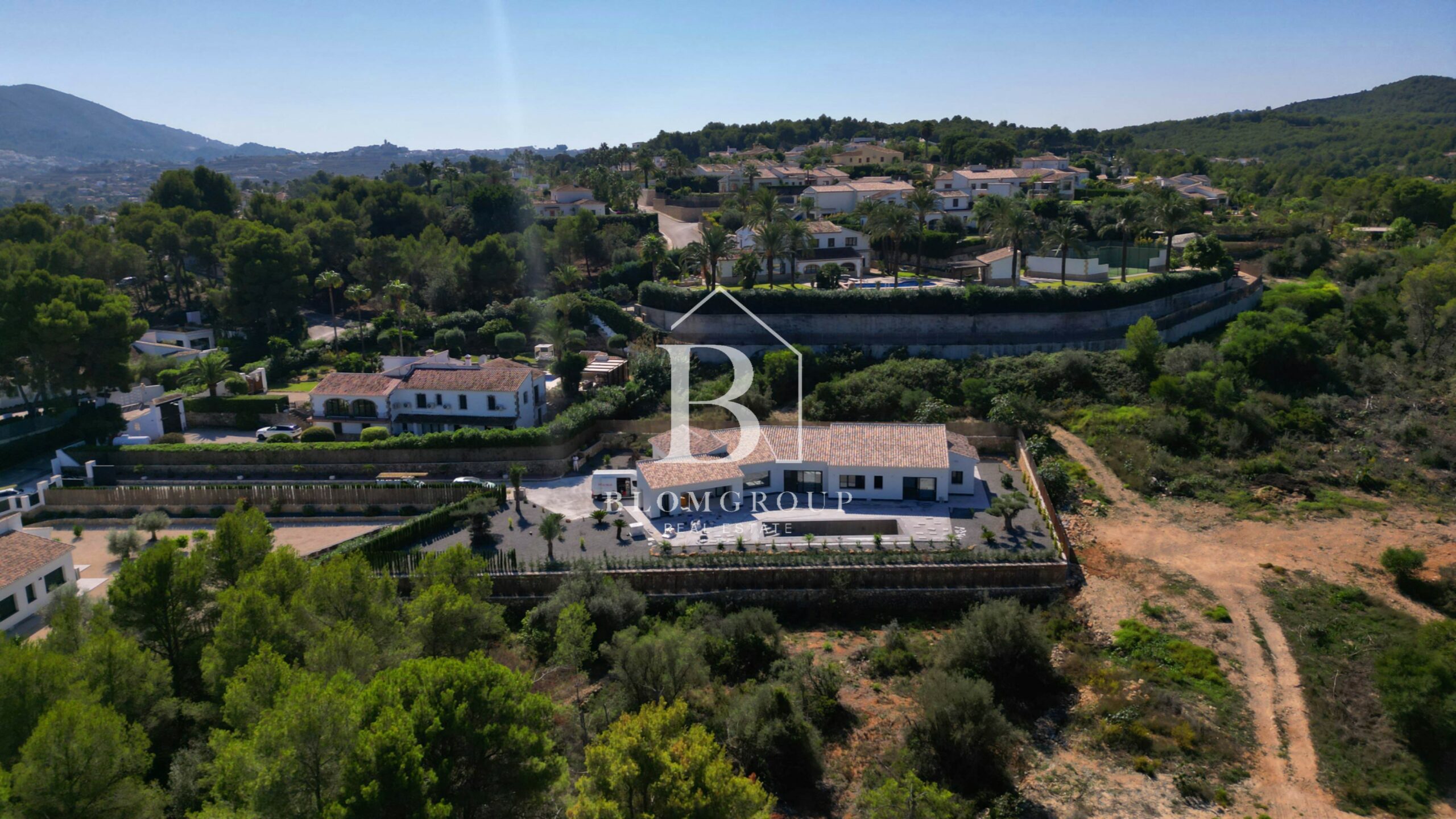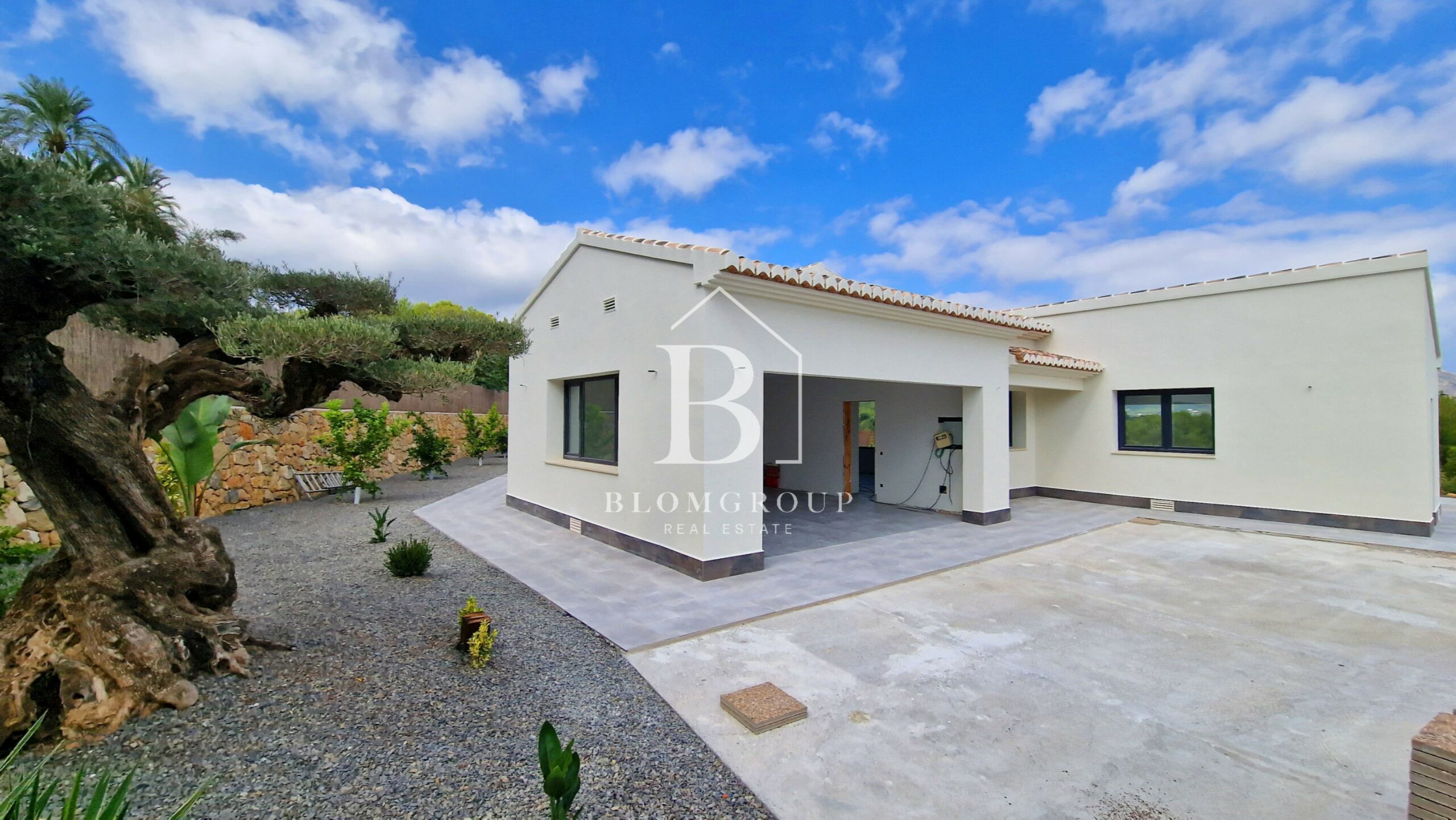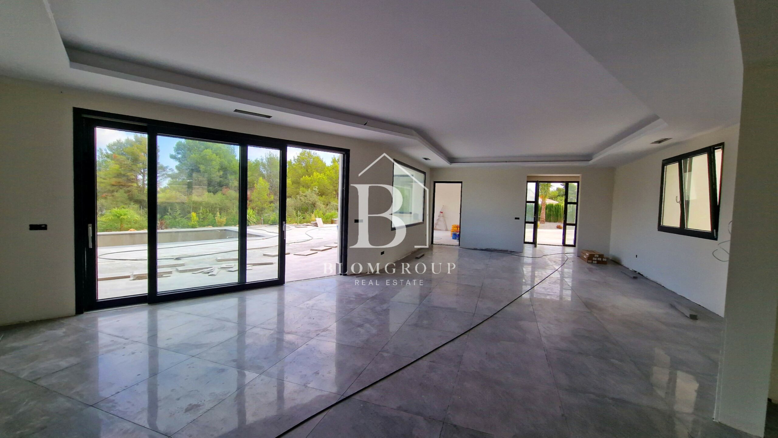 Als u via de voordeur of de ingang van de garage het pand binnenstapt, wordt u verwelkomd door een ruime en uitnodigende hal. Dit leidt tot een ruime en natuurlijk verlichte open woon- en eetkamer die naadloos aansluit bij de moderne keuken. De leefruimte strekt zich moeiteloos uit tot het buitenzwembad en het overdekte terras. Hier zijn de uitzichten op de majestueuze berg Montgó ronduit adembenemend en vormen ze een prachtige achtergrond voor uw dagelijkse leven.