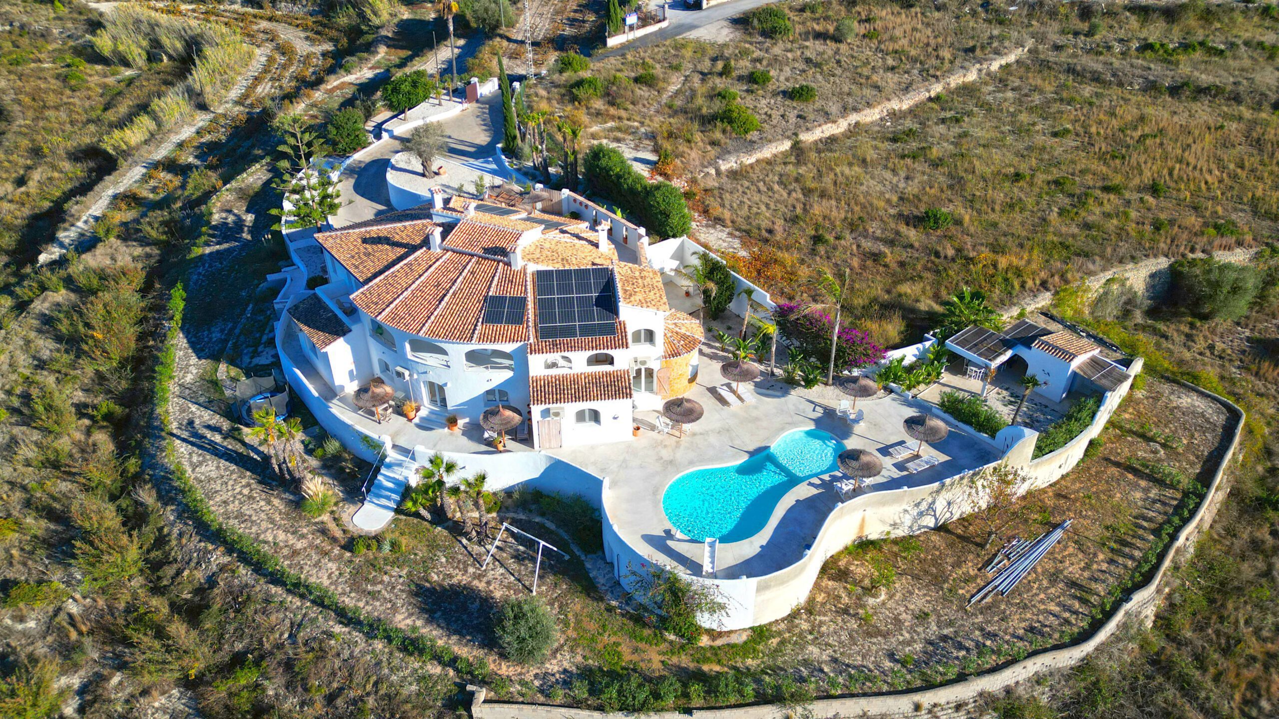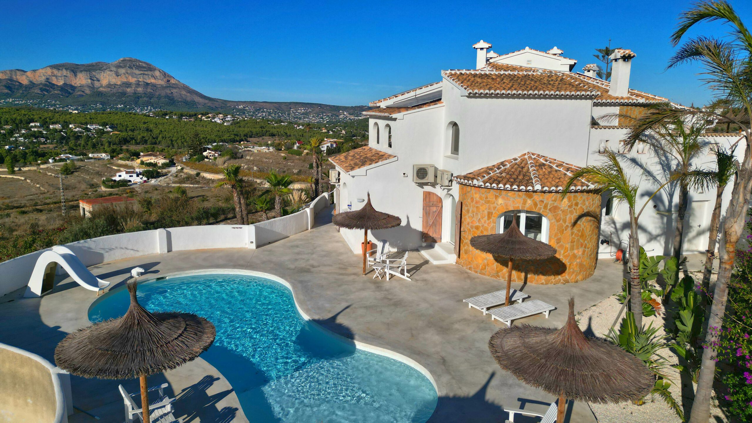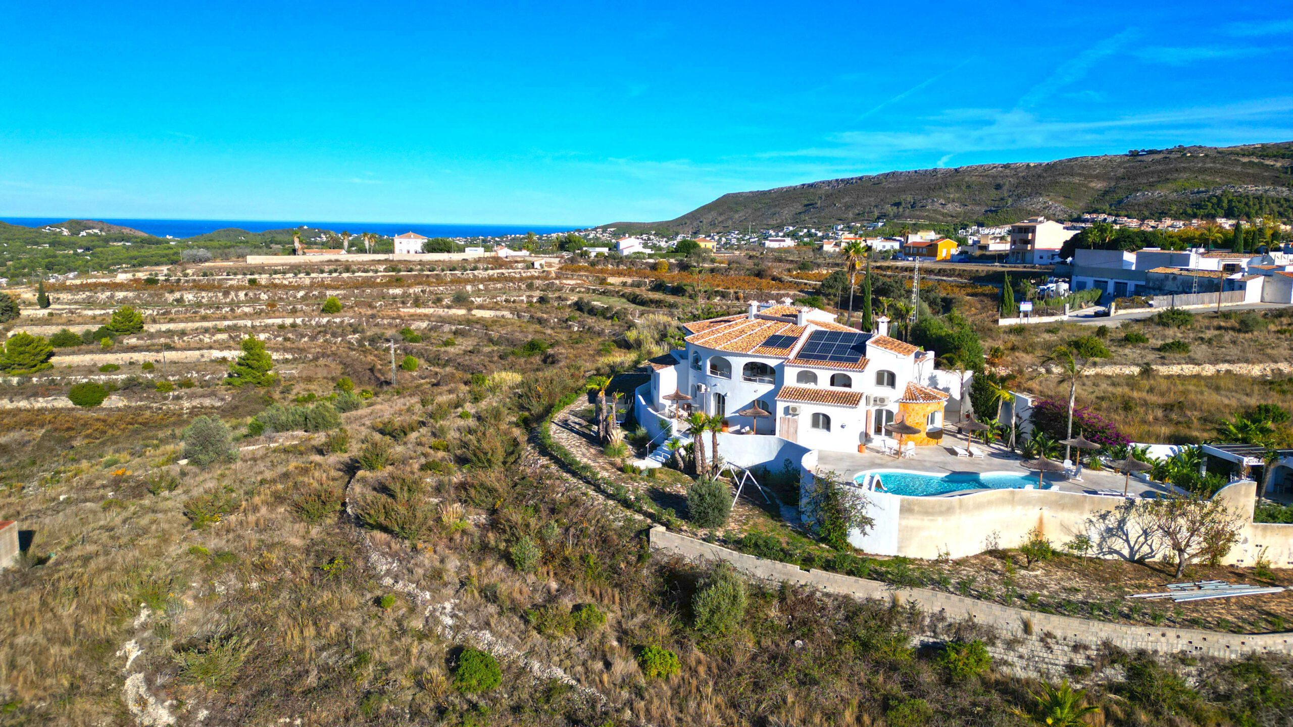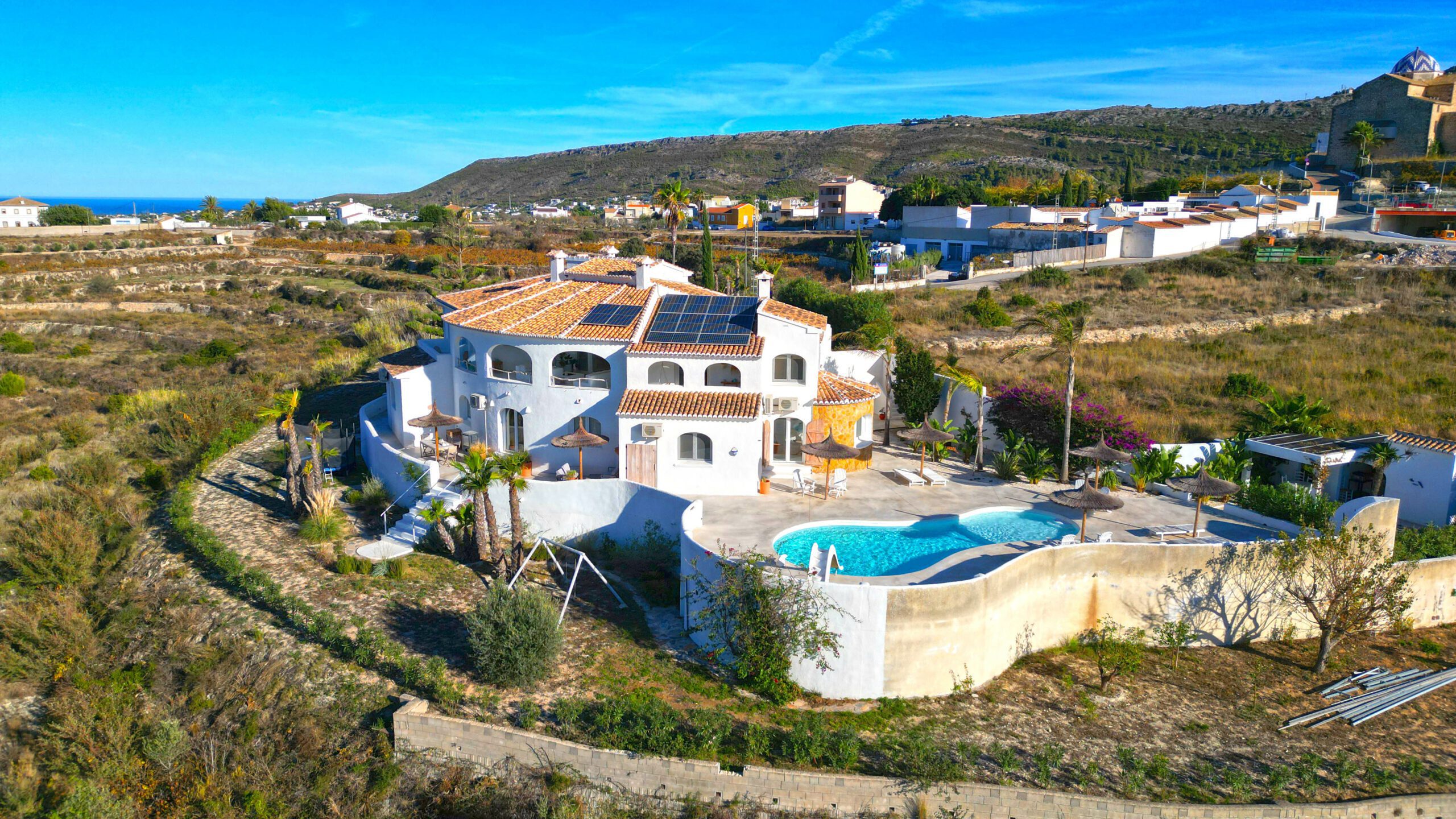 Im Außenbereich unterstreicht ein neuer, von Panoramaterrassen umgebener Pool den Charme der Immobilie. Mit dreifach verglasten Fenstern, einem A+-Energiezertifikat, einer 10-kWh-Solaranlage und Mitsubishi-Klimaanlagen sind Komfort und Effizienz garantiert.