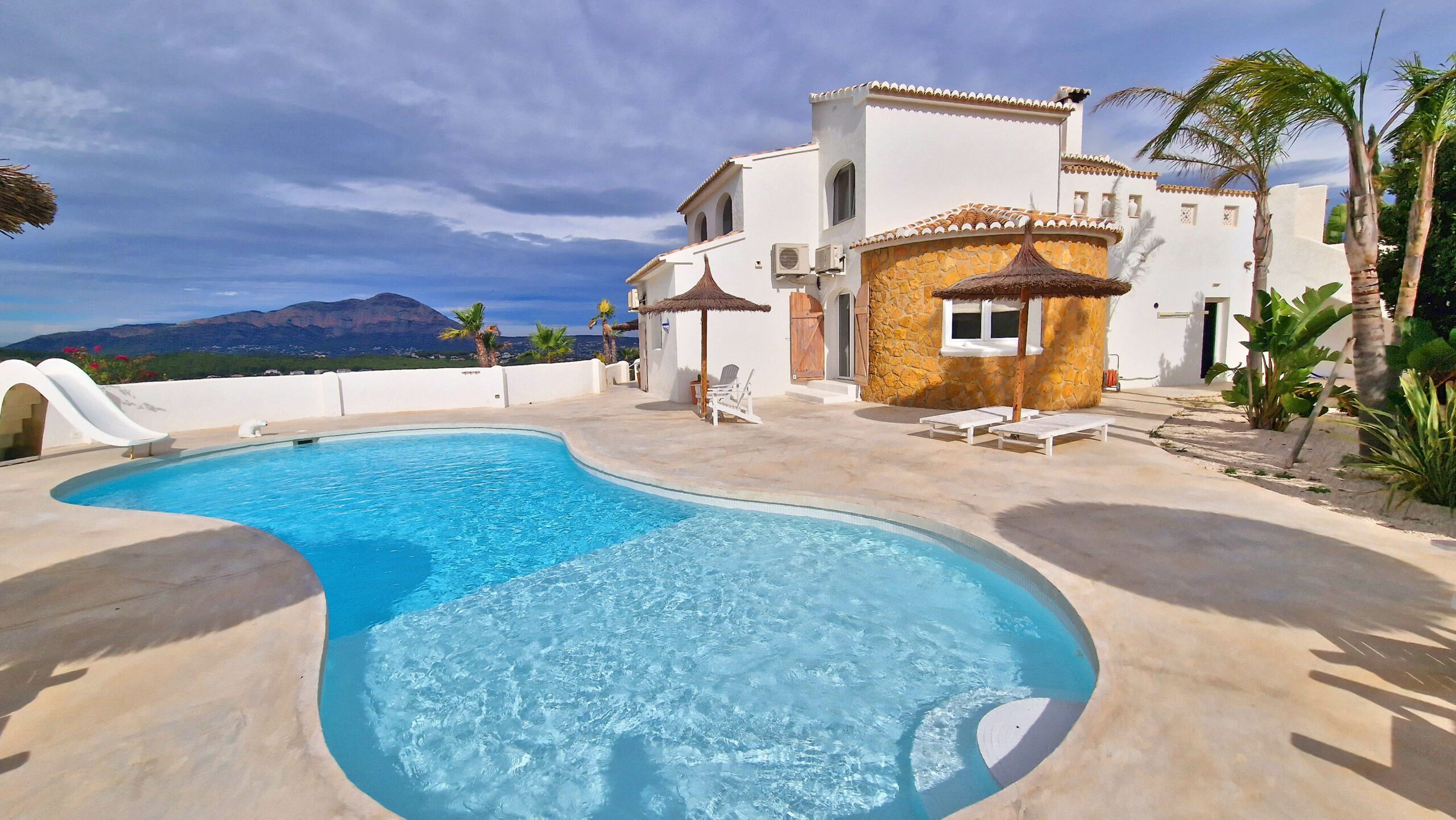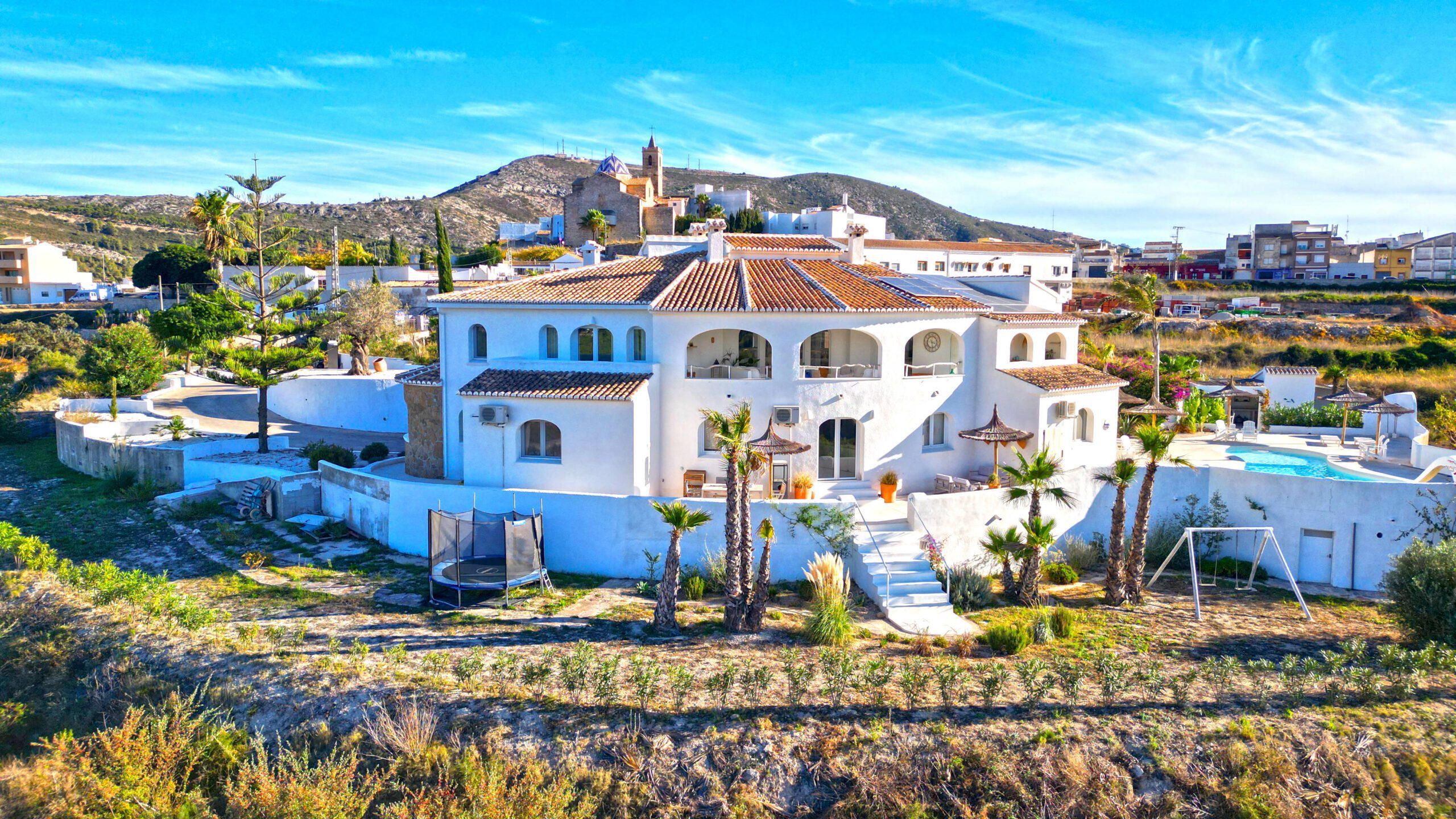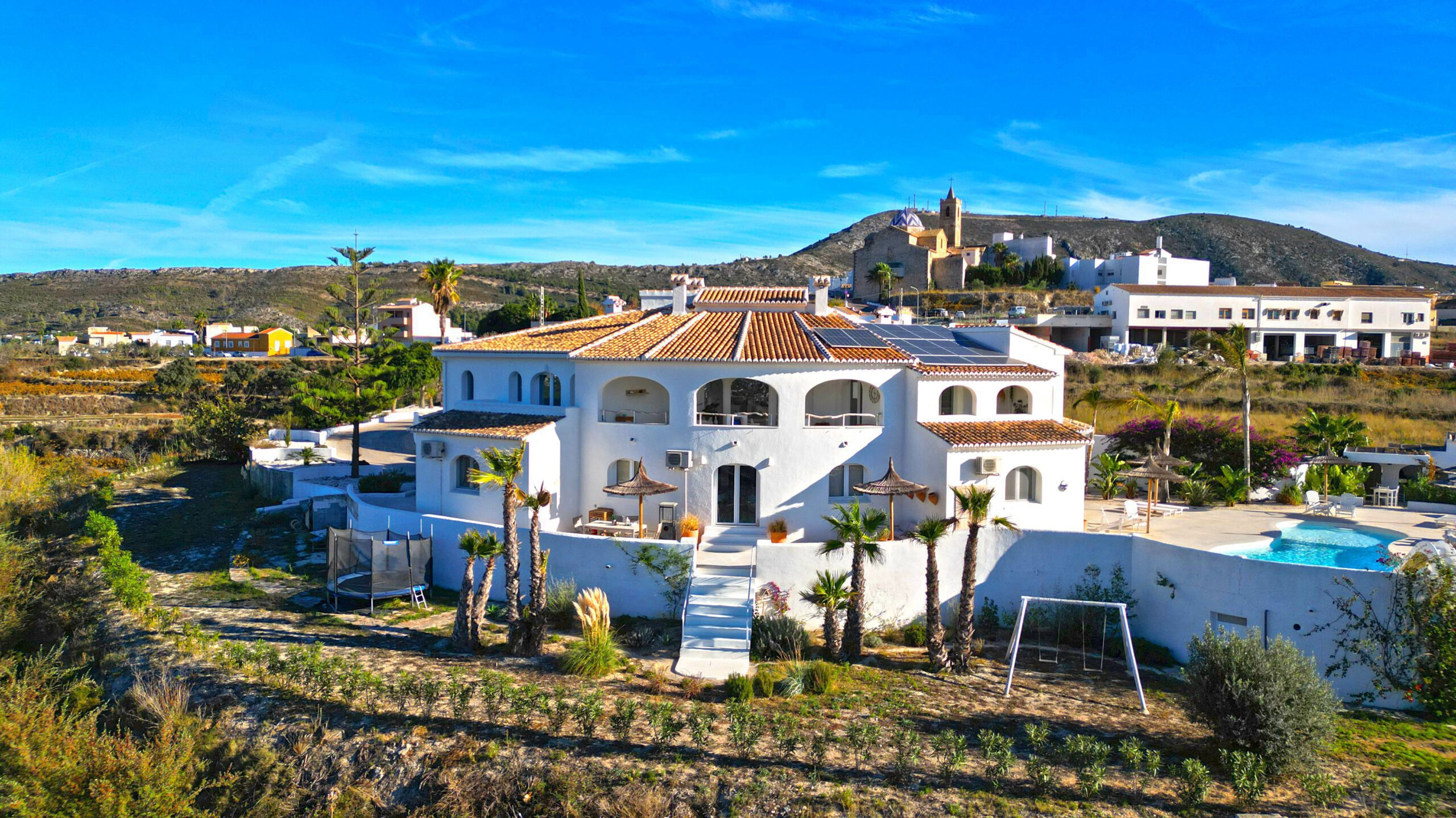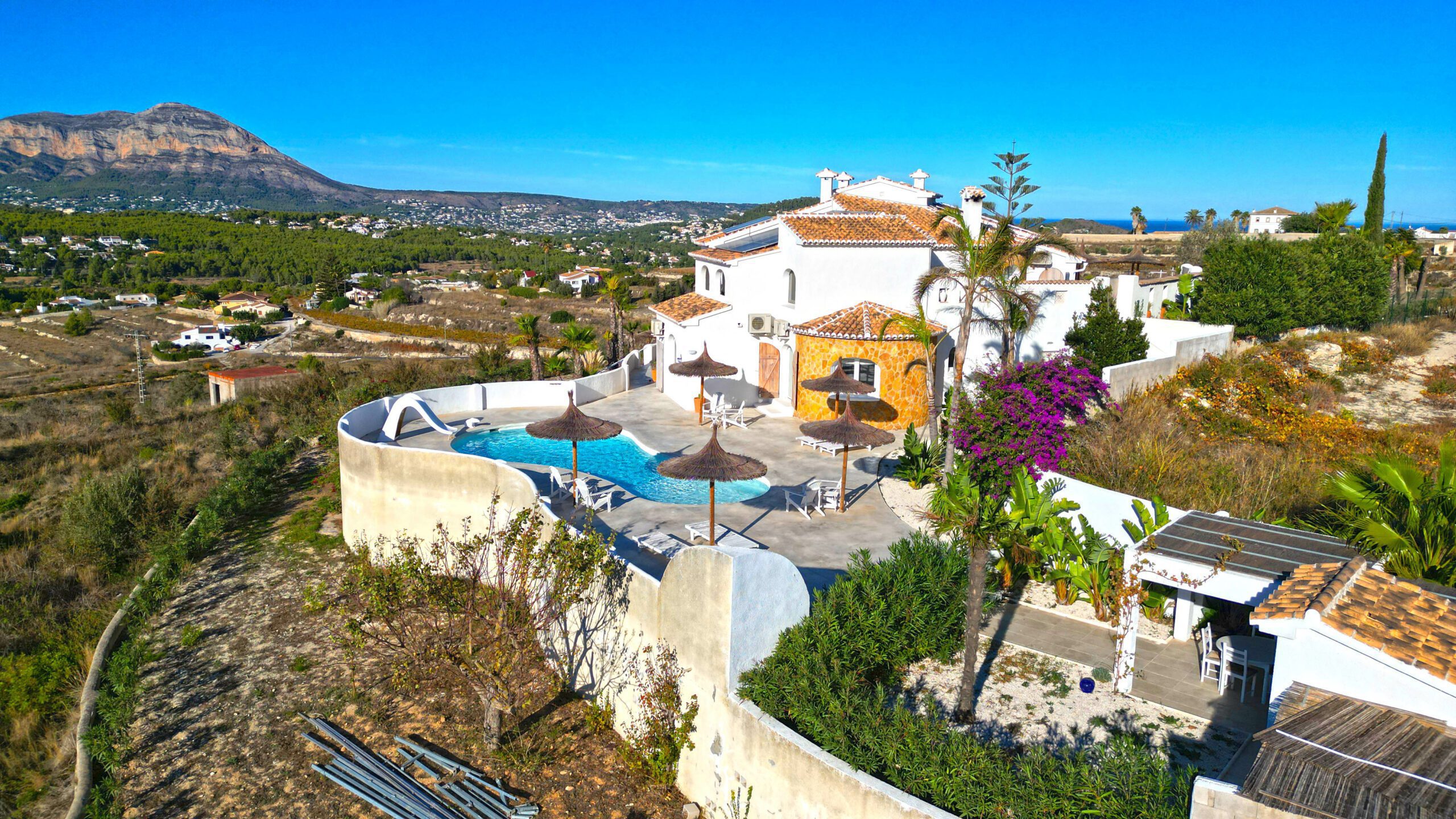 Im Außenbereich unterstreicht ein neuer, von Panoramaterrassen umgebener Pool den Charme der Immobilie. Mit dreifach verglasten Fenstern, einem A+-Energiezertifikat, einer 10-kWh-Solaranlage und Mitsubishi-Klimaanlagen sind Komfort und Effizienz garantiert.