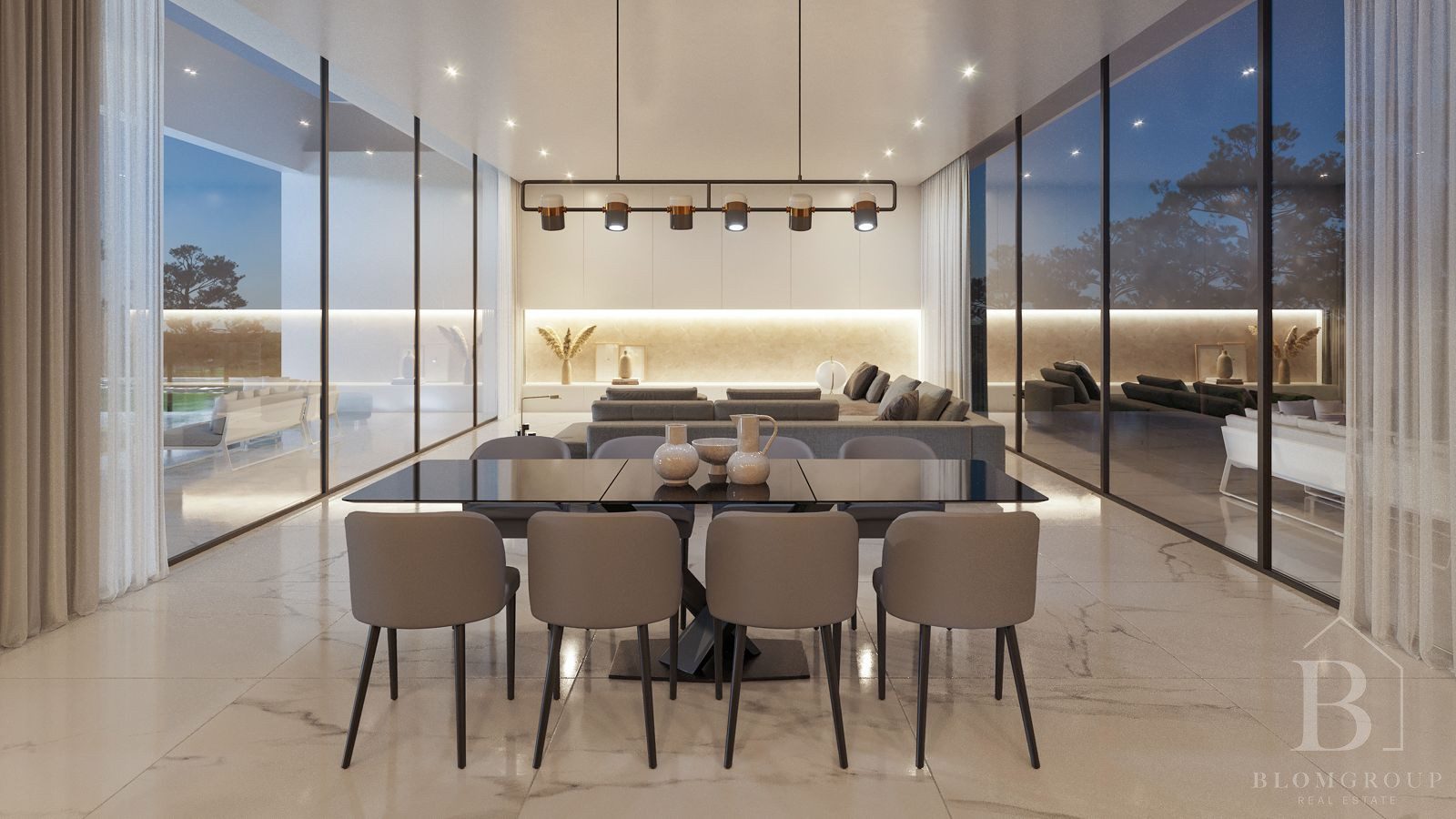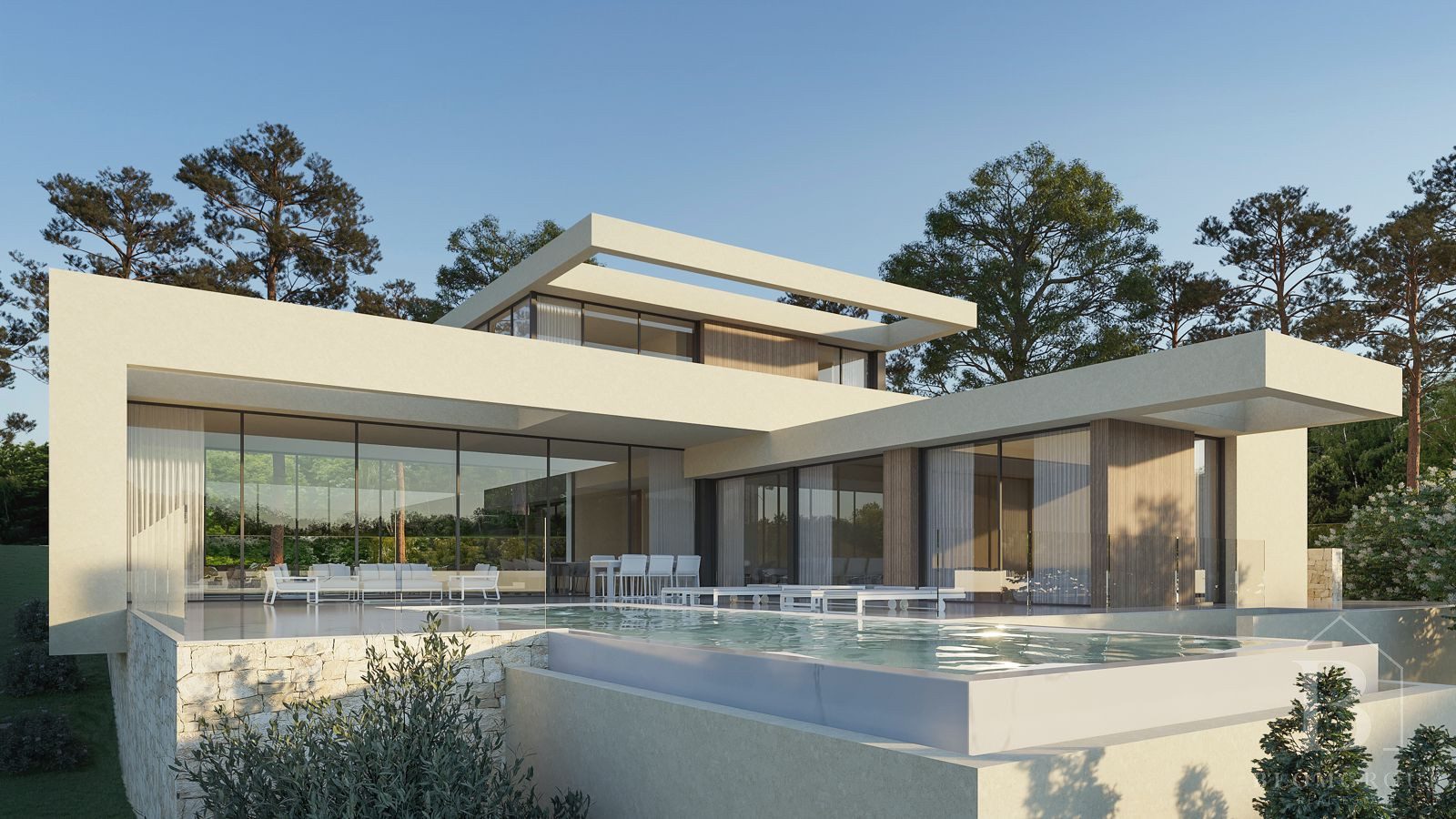 Verspreid over 333 m2 is deze villa een bewijs van hedendaagse architectuur en modern design. Met nauwgezette aandacht voor detail combineert het naadloos elegantie en comfort in een serene omgeving, omringd door de natuurlijke schoonheid van de omgeving.